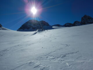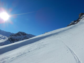 Gita lunghissima partendo da Bruil, ma oggi in splendide condizioni. Dal rifugio in su leggermente ventata, ma su fondo duro, molto comoda in salita e divertente in discesa. Passati sotto la Grinta Parei senza rampant. Discesa molto bella fino al rifugio, poi seguito la strada. Nessuno in tutto il vallone
