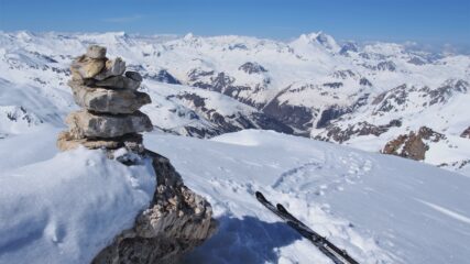 Discesa ore 10.30 superlativa, in alto portante morbida e poi firn stupendo. Imboccato un canalino sopra al Refuge du Fond un pò svalangato, forse conviene rientrare dall’itinerario della Galisia.