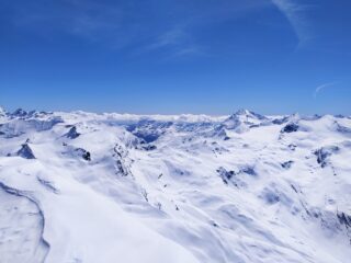 Panorama in cima 6 stelle con 360° visibili praticamente tutte le cime, luogo glaciale e selvaggio, da sapersi orientare