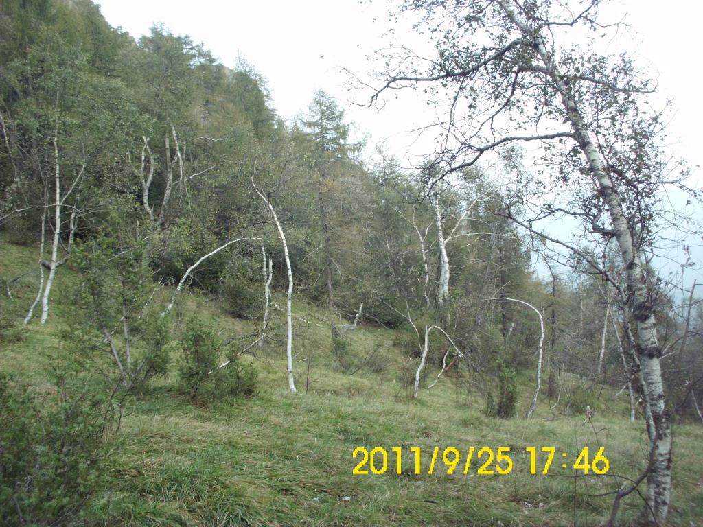 Qui si incrocia una strada sterrata. Seguirla per alcuni metri finchè ritroviamo sulla destra il sentiero che risale con decisi tornanti la pineta fino a giungere al “Pian d’le Draie” dove troviamo il bivio. Proseguire a destra (Lunelle) fino a raggiungere il Colle delle Lunelle (1330 m).