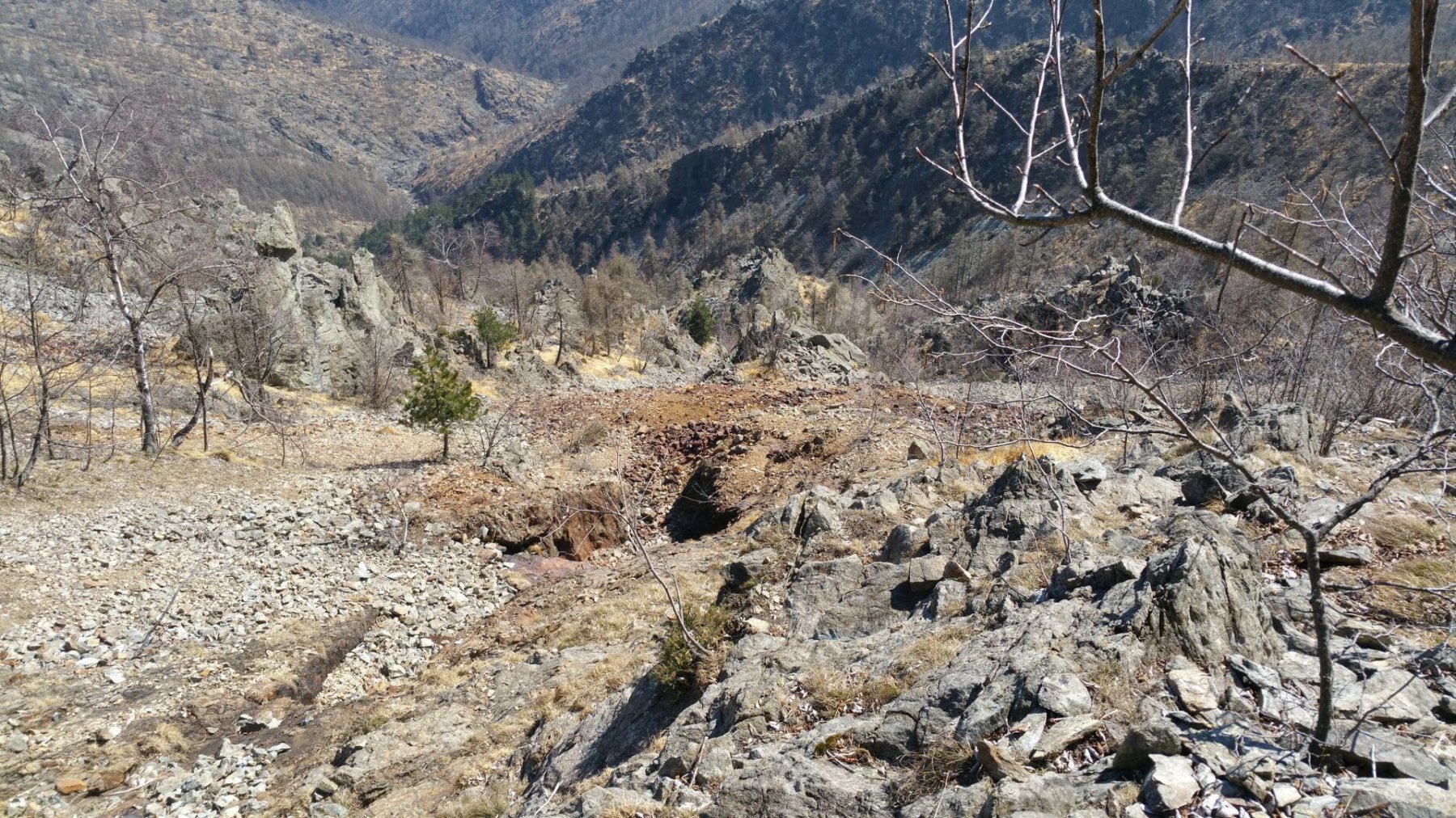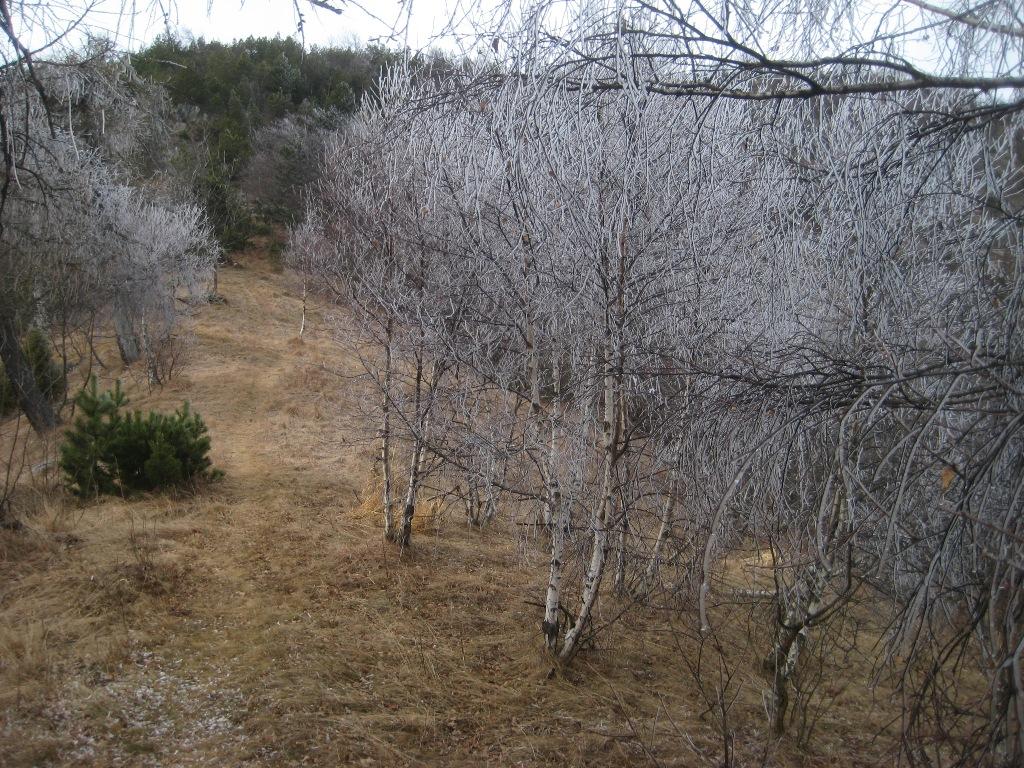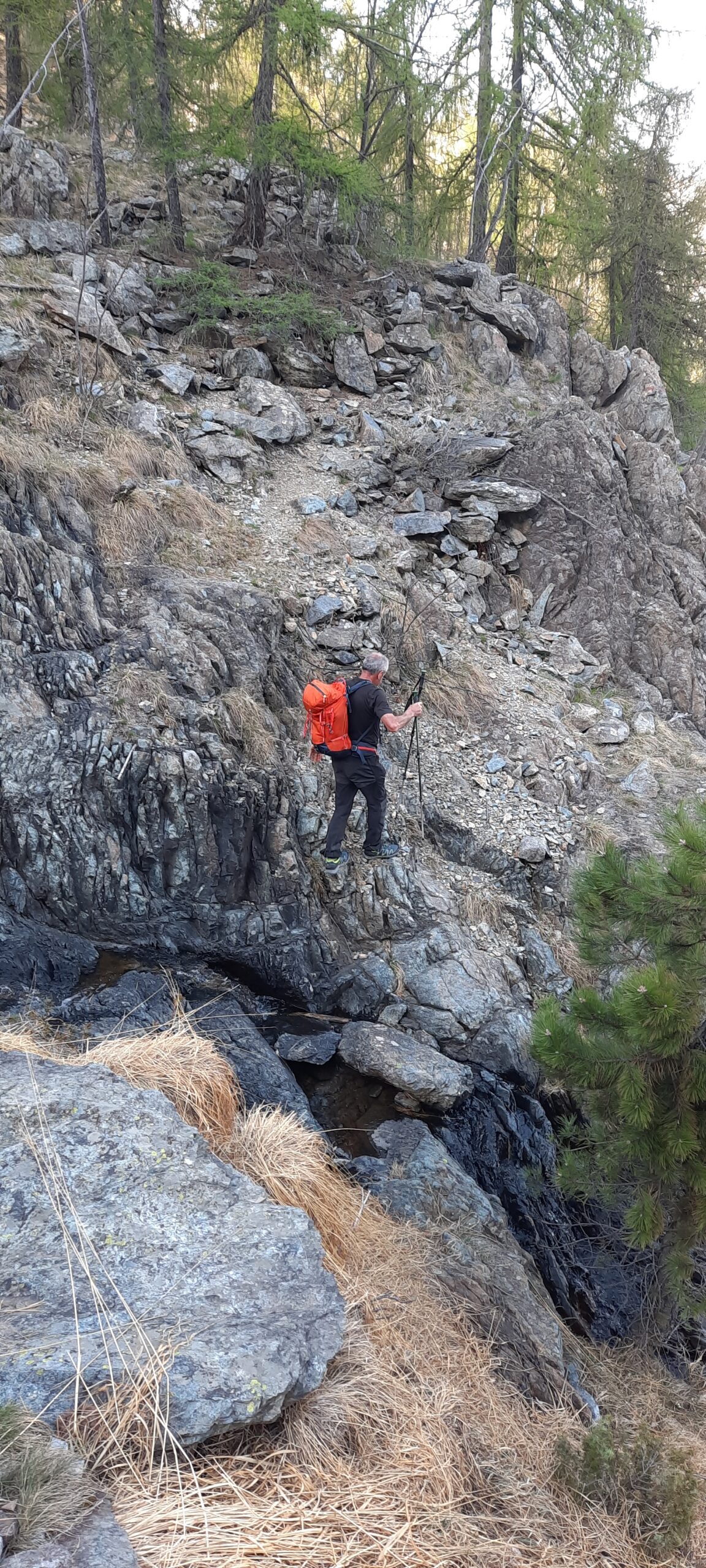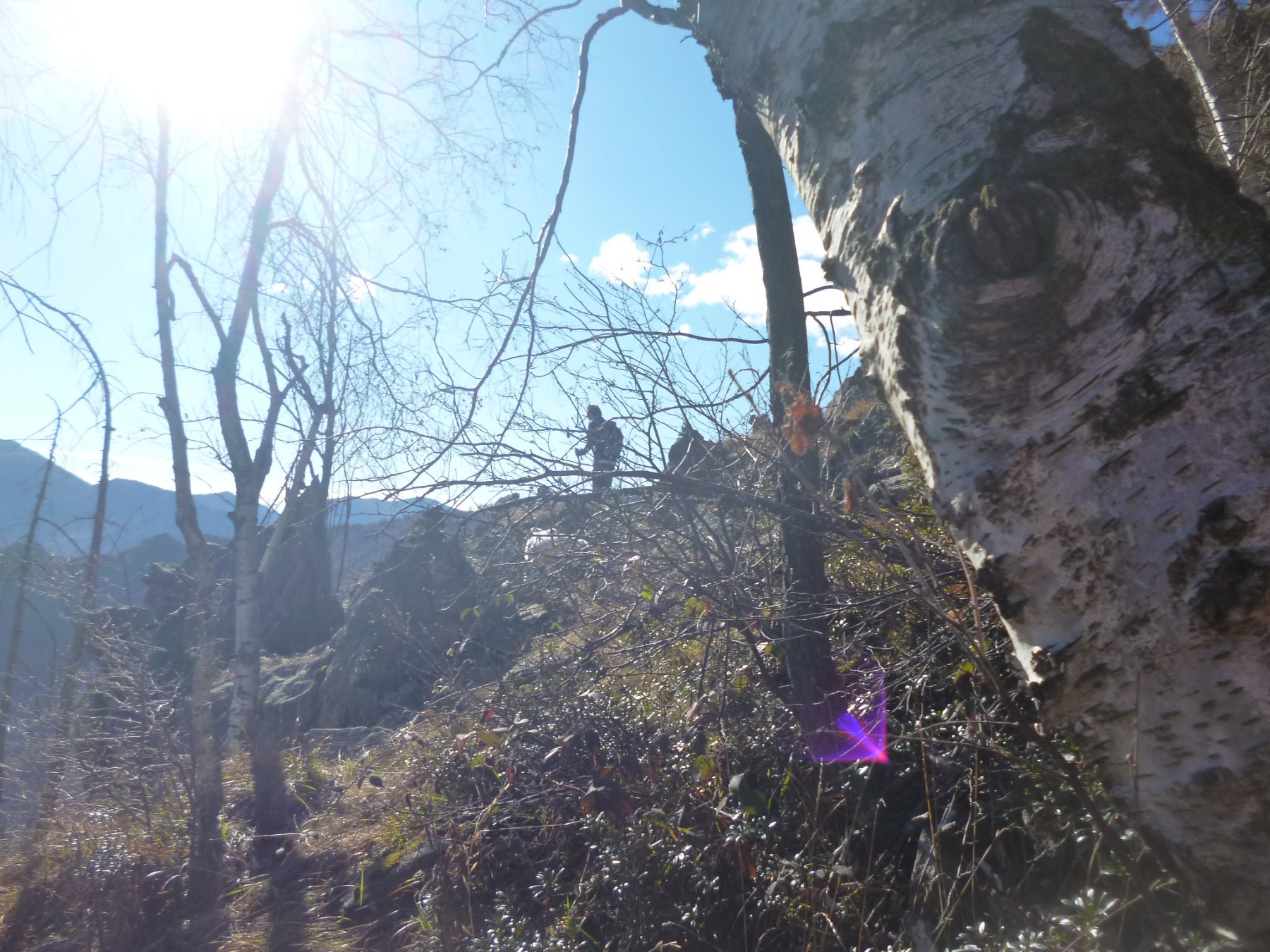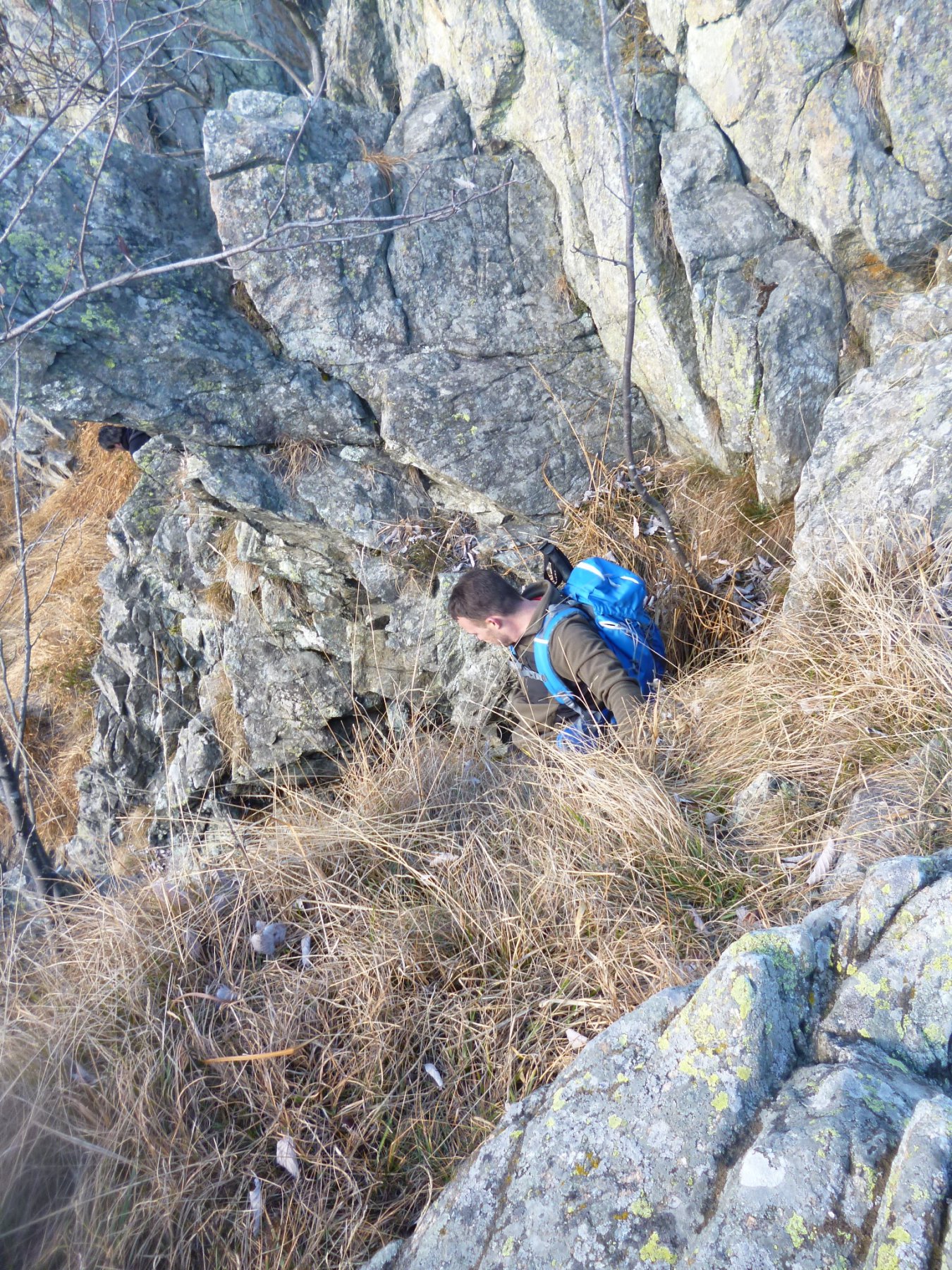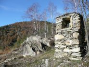 Da qui seguire le traccie sulla sinistra. Il bel sentiero che ci ha accompagnato fino ad ora non resta che un ricordo. Tenendosi sempre sul versante di Traves per traccie e cengie e aiutandosi sovente con le mani riusciamo ad evitare alcuni salti rocciosi fino a raggiungere per “facili” roccette la cresta e con un ultimo passaggio un poco esposto la croce della vetta (1494 m).