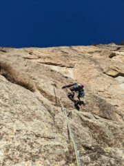 Via su roccia eccellente. Arrampicata molto sostenuta in stile “falesia”, nel senso che, pur essendo molto logica e bella, segue muri compatti su tacche con passi alcune volte molto bloccosi. La spittatura pur essendo ravvicinata non permette di azzerare. Qualsiasi mungitura non porta a nessuna presa buona, ma nel mezzo del “blocco” per arrivare allo spit successivo. Bisogna tenersi e scalare bene, insomma.