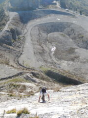 Per la natura della roccia e lo stato della parete, le scariche di pietrisco sono continue, vi è una grande quantità di materiale in bilico, il caschetto è obbligatorio!