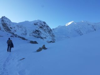 Bellissimo l’arrivo sulla calotta sommitale, con quel sole autunnale che illumina tutto di sbieco, donando forme nuove.