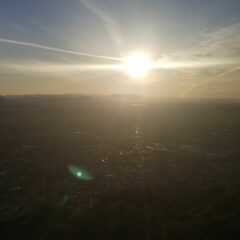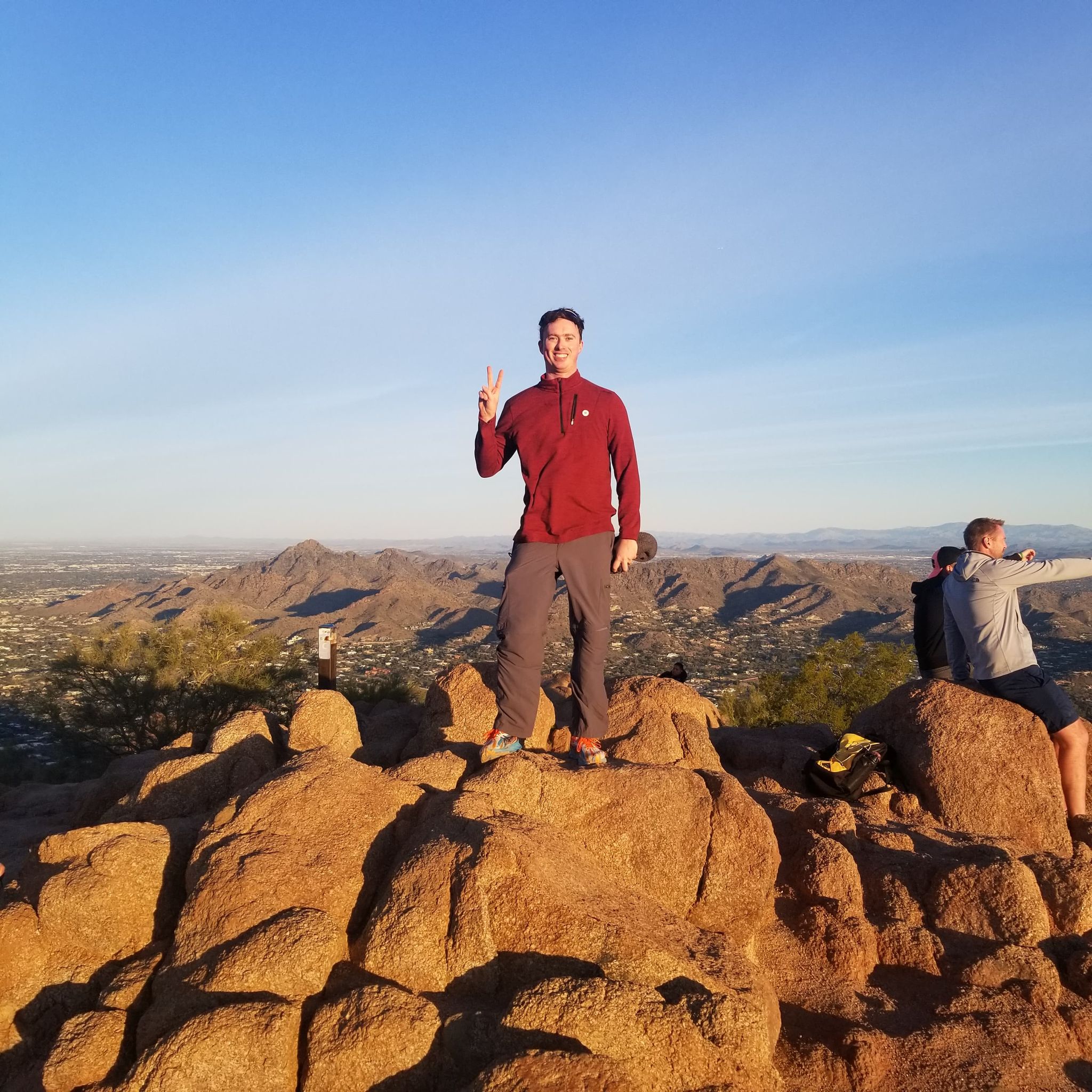 Giunti ad un colletto, le difficolta’ si abbattono temporaneamente, per poi aumentare di nuovo in corrispondenza di un ripido canalone. Arrivati in cima al canalone, il sentiero diventa nuovamente piu’ facile e si arriva in breve alla panoramica sommita’, con una vista incontrastata a 360 gradi su Phoenix e le montagne circostanti.