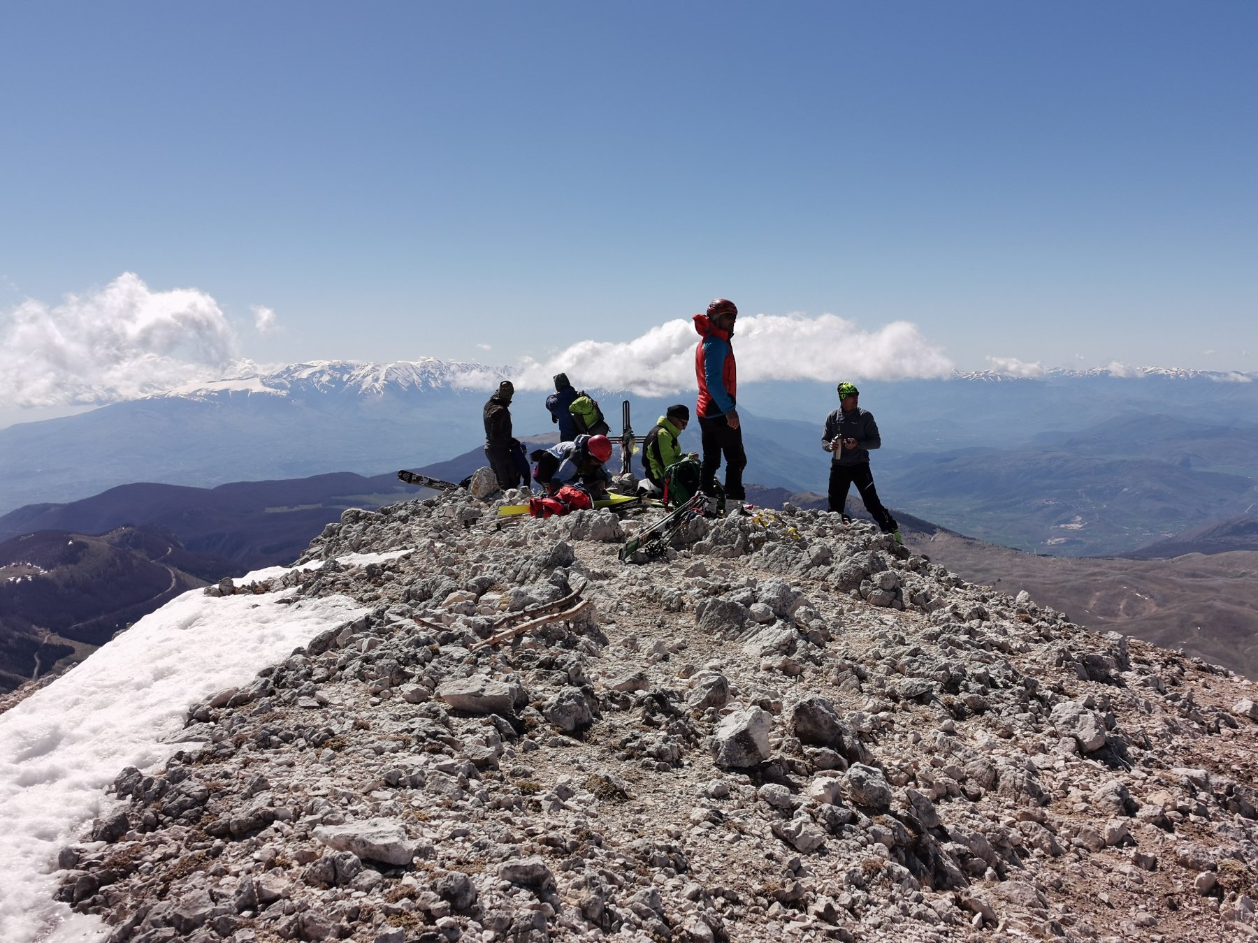 Salita su neve dura, prima coltelli poi sul ripido sommitale ramponi. Cielo terso, vento da nord. 45 min in vetta. Discesa spettacolo alle 11 con firn eccezionale che iniziava a scaldare.