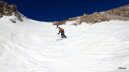 Saliti dalla Vetica su lingue di neve esigue ma continue fino alle briglie che si passano a piedi. Poi innevamento discreto e continuo in tutto il vallone. Utili i rampant nel tratto ripido centrale e nel pendio finale. Giornata calda e serenissima con venticello solo in cima. Scesi dal Paginone in condizioni da urlo, (firn perfetto) fino al Ristoro Mucciante, poi autostop!