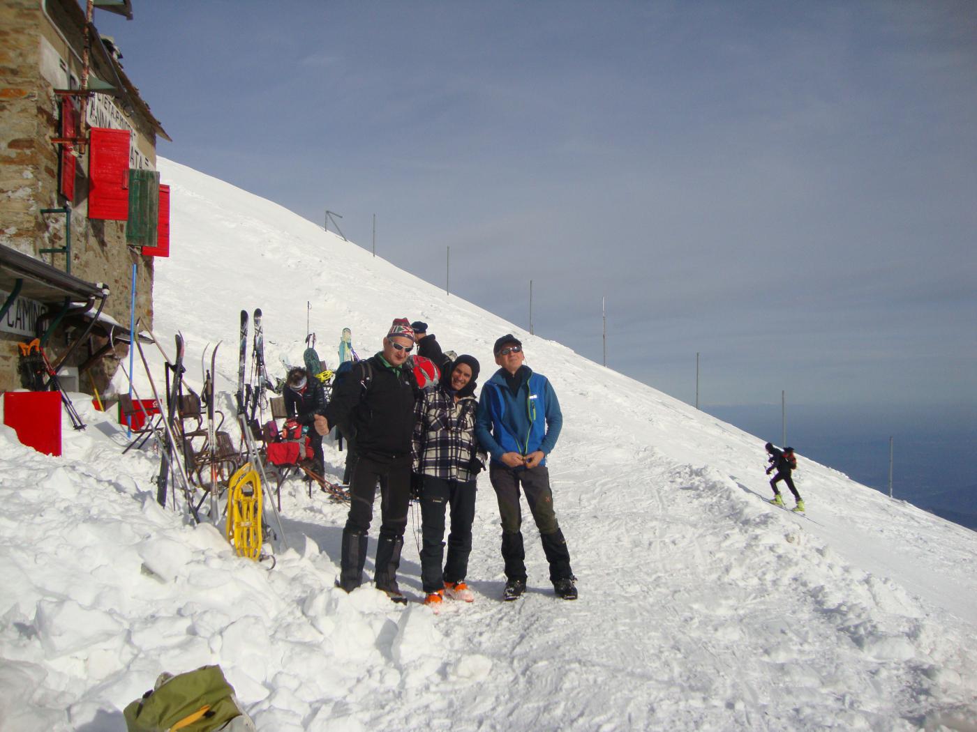 Ottima giornata di sole con un bel belvedere in compagnia di vecchi amici ,Enzo e Franco saliti tramite il monte Rosso mentre io e Sergio saliti con ciaspole sulla via classica in h 2,00