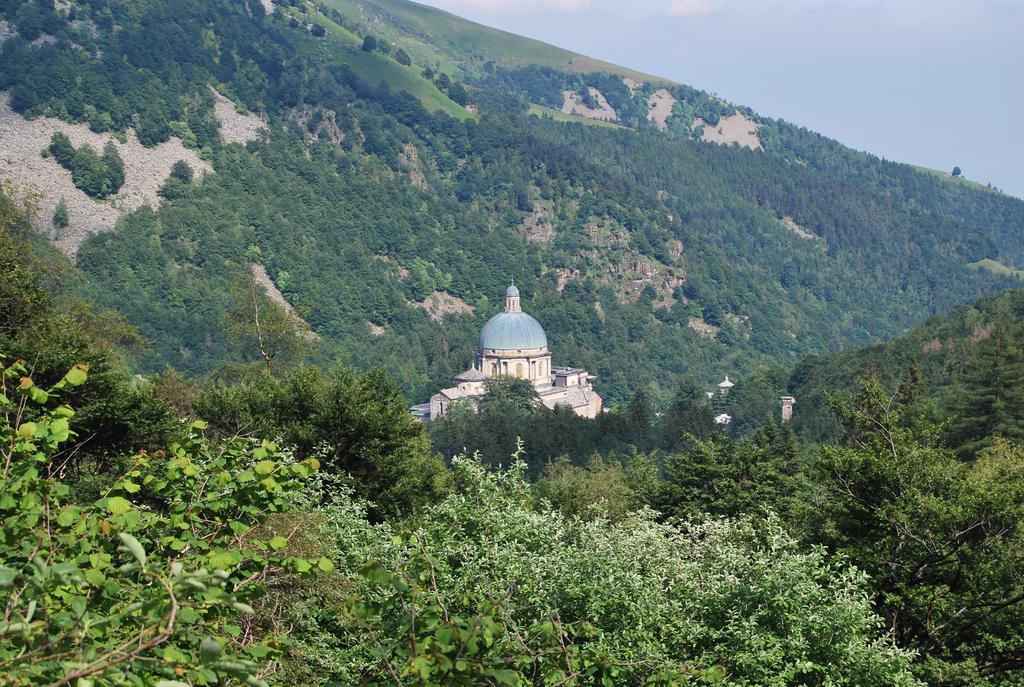In discesa si passa prima la Capanna Renata e poi, lungo un sentiero sempre evidente e ben segnato che segue il tracciato della cabinovia, dopo avere sfiorato i ruderi degli alpeggi di Camino si arriva all’Albergo Savoia, punto di arrivo della funivia che sale da Oropa. Dall’Albergo si scende lungo il sentiero D13, che tocca prima il Rifugio Rosazza e quindi, dopo alcuni tornanti, sbocca su una strada sterrata ricoperta dai detriti di una frana. Seguire la sterrata fino al suo sbocco sulla strada asfaltata, attraversarla ed imboccare subito sul lato opposto il sentiero che, prima di un ristorante, svolta a destra e sul prato ritorna sulla strada asfaltata in prossimità del ponte sul torrente Oropa, dietro la Basilica nuova.