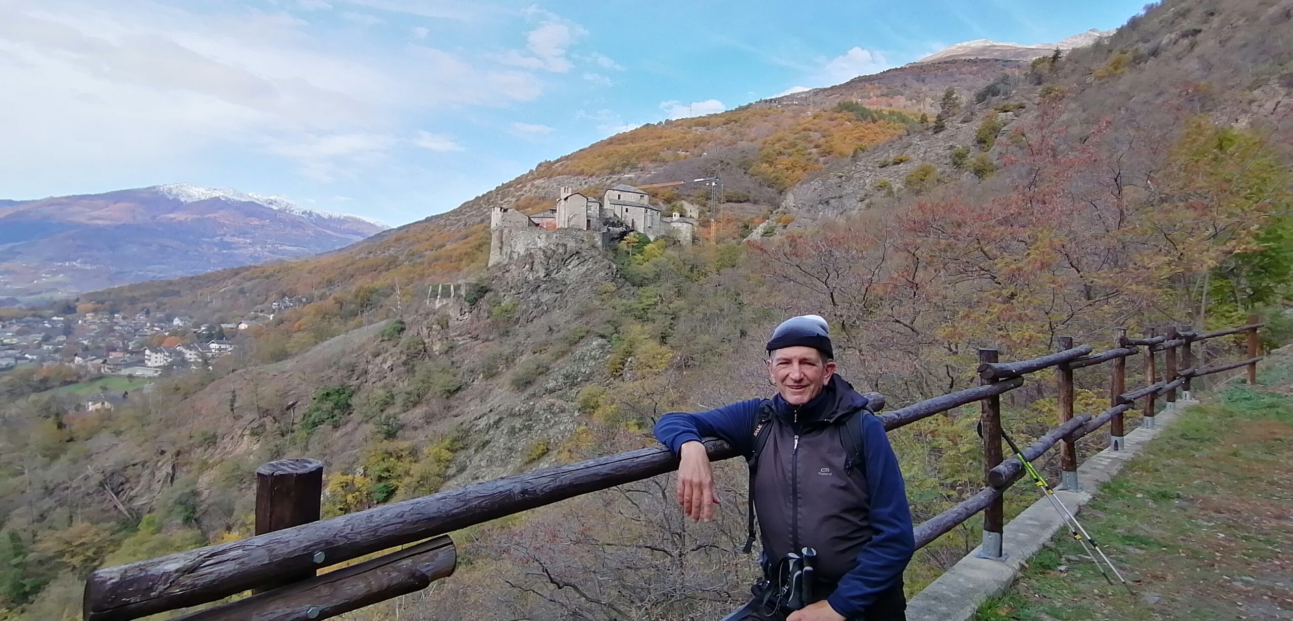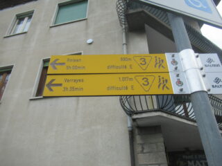 Tappa in compagnia di Giorgio e Pier Albino. Da Roisan scesi con il bus fino ad Aosta e poi preso altro bus fino a Nus. Giornata inizialmente nuvolosa poi via via sempre più bella.