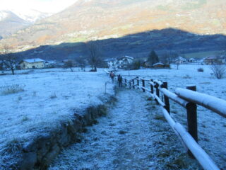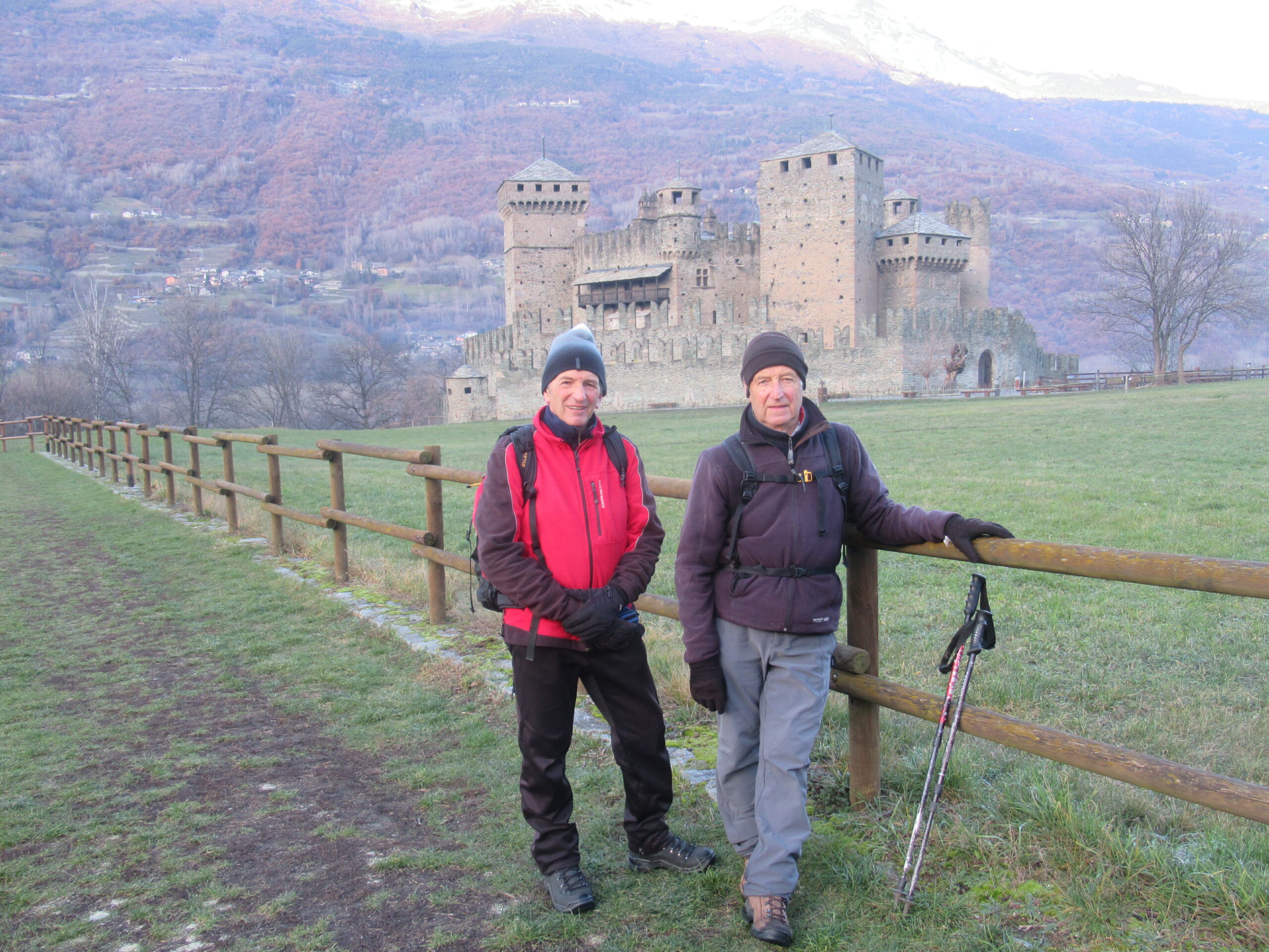 Non essendo ancora entrati nell’ottica delle racchette da neve proseguiamo il nostro Cammino Balteo con la tappa che va da Aosta a Fenis. Con Giorgio e Pier Albino abbiamo effettuato questa tappa piuttosto lunga ma con dislivelli contenuti. Bei panorami sulla valle centrale. Itinerario ben segnalato anche se nei centri abitati qualche segno in più non stonerebbe. Unico neo il fatto che in questa stagione tutto il percorso rimane costantemente all’ombra e vista la giornata di oggi abbiamo patito un po’ di freddo… Consigliabile in primavera.