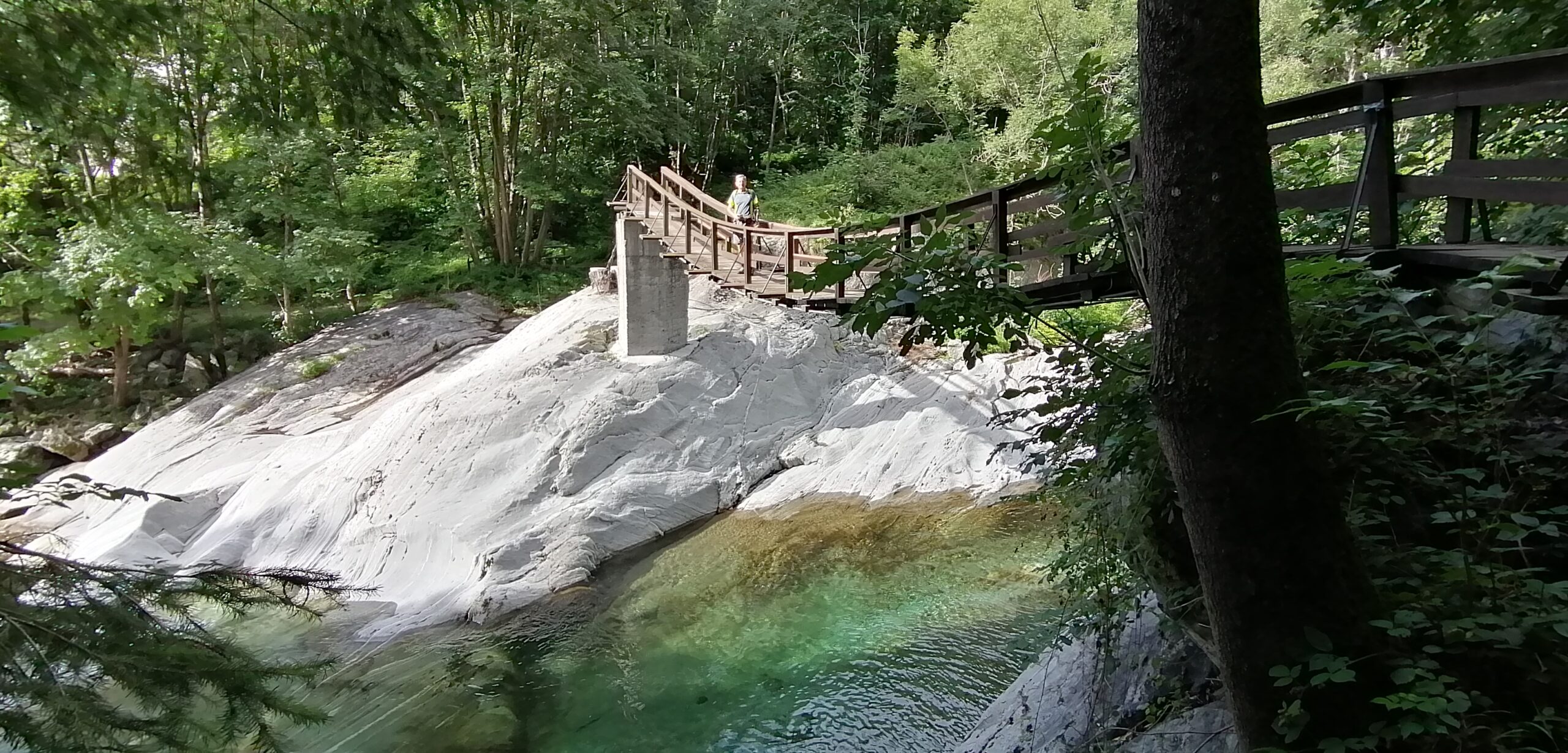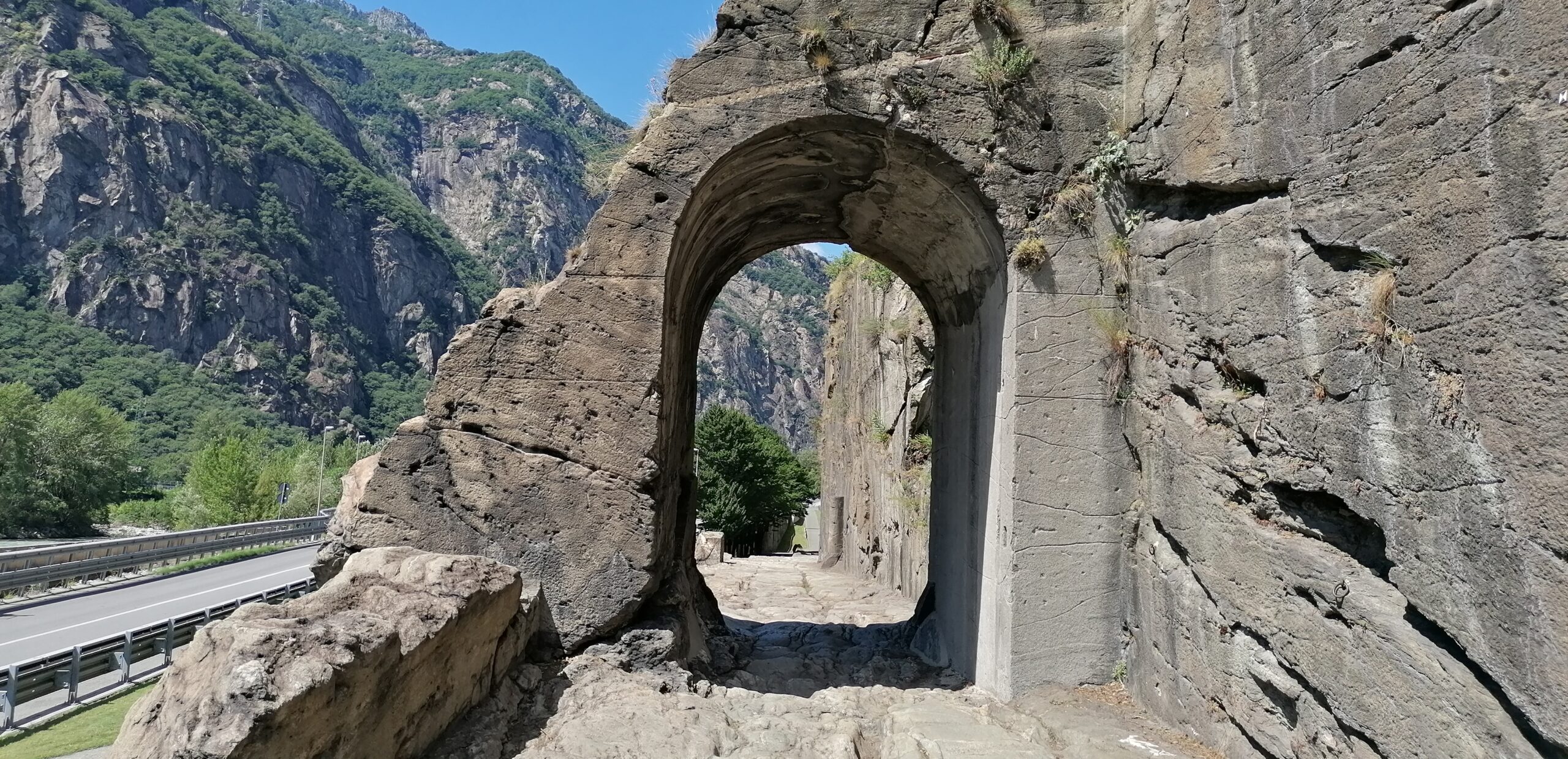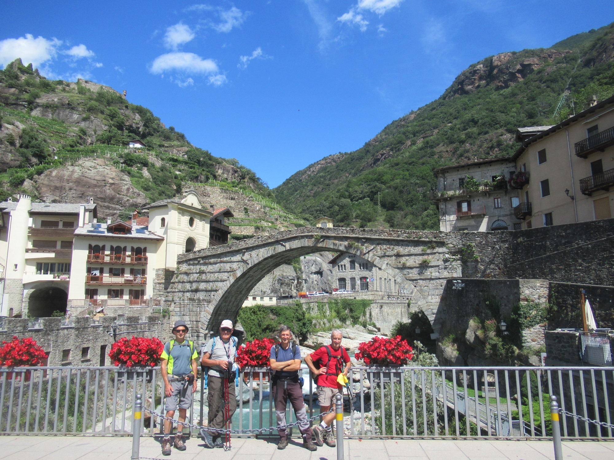 Dalla via centrale di Pontboset seguire i segni del Sentiero dei Ponti. Superiamo un ponte sospeso e il sentiero prosegue costeggiando il torrente fino ad un bivio dove bisogna proseguire diritto per attraversare un altro ponte. Non fare caso al cartello fine del percorso ma proseguire in salita. Qui si trovano alcuni tratti esposti, messi in sicurezza con cavi (ma necessari solo se gelato). La mulattiera giunge alla borgate abbandonate di Roncs Dessous e Les Orfoilley cominciando a perdere quota. Con una serie di svolte raggiungiamo il fondovalle e arriviamo a Hone. Superiamo il municipio e attraversiamo il ponte per raggiungere il borgo di Bard. Entriamo nel borgo medioevale fino al municipio dove scendiamo sulla destra e risaliamo un tratto fino ad arrivare all’arco scavato nella roccia all’ingresso del borgo di Donnas. Proseguiamo sulla via principale fino alla porta orientale dove incrociamo il percorso 4 del cammino Balteo. Andiamo diritti nella Piazza XXV aprile con municipio per poi scendere alla SS 26. Prendiamo la prima strada a sinistra e ci portiamo a monte del centro storico di Donnas. La strada prosegue a mezzacosta tra le vigne. Alle case di Bousc Darè scendiamo a destra fino al castello di Baraing e in breve al Ponte del Diavolo meta della tappa.