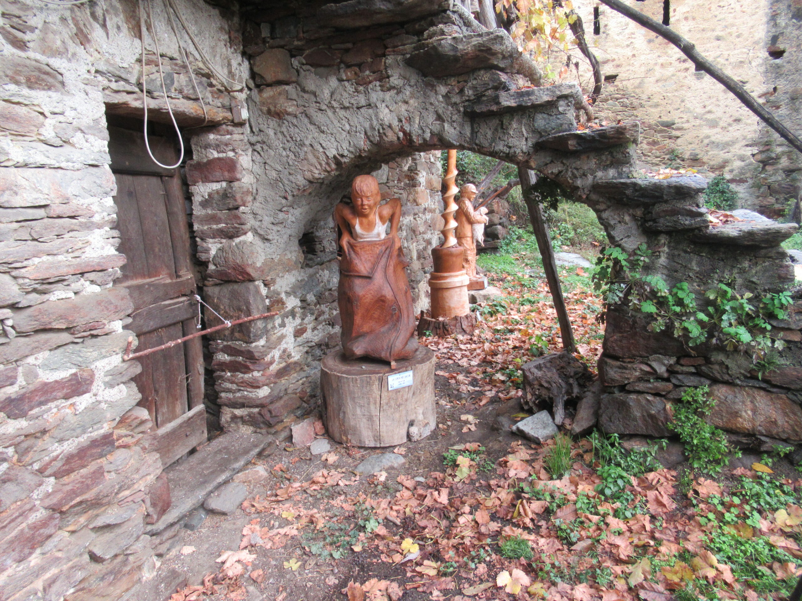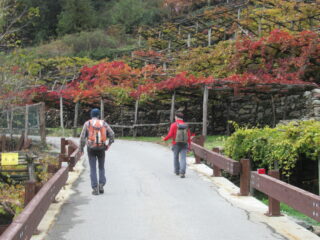 Dalla chiesa di Fontainemore, dopo aver passato il ponte, si prende la strada sul retro che scende verso valle (non ci sono segnali…) si prosegue sulla strada lasciando il ponte a sinistra (più avanti la strada è interrotta) ed arrivando nei pressi di un ponte tibetano che si attraversa per arrivare sulla strada provinciale Pont Gressoney. Arrivati a Lillianes si perviene nel complesso di San Rocco dove vicino al cimitero ci sono i cartelli che indicano la tappa. Si prosegue in discesa su asfalto, ad un bivio tenere la sinistra. Terminato l’asfalto proseguire su mulattiera che a mezza costa scende nella valle. Si arriva così ad un bivio dove si prende a destra sulla mulattiera che sale ripida in 40 m. al caratteristico villaggio di Chemp che merita una lunga visita per ammirare le varie sculture che si trovano tra le case. Si esce dal paese sulla parte opposta e si sale lungo la strada asfaltata (un paio di scorciatoie su sentiero) fino ad arrivare ad un altro bivio nei pressi del mulino di Glacieres (purtroppo chiuso). Si seguono le indicazioni (sentiero 3 e 5) e si perviene a Marine. Seguendo alcuni tratti di mulattiera lastricata e strada asfaltata si perviene a Perloz. Si attraversa il paese e si raggiunge il Santuario di Notre Dame de la Garde. Dal Santuario si scende sulla strada asfaltata sottostante e si prosegue per un tratto fino ad incontrare della segnaletica. Prendere la mulattiera a sinistra (8) che con tratti ripidi porta appena sopra a Pont. Si segue ora una strada asfaltata a destra che attraversa in quota vigneti e ulivi fino ad arrivare a Donnas nei pressi della porta che da accesso al borgo, dove termina la tappa.