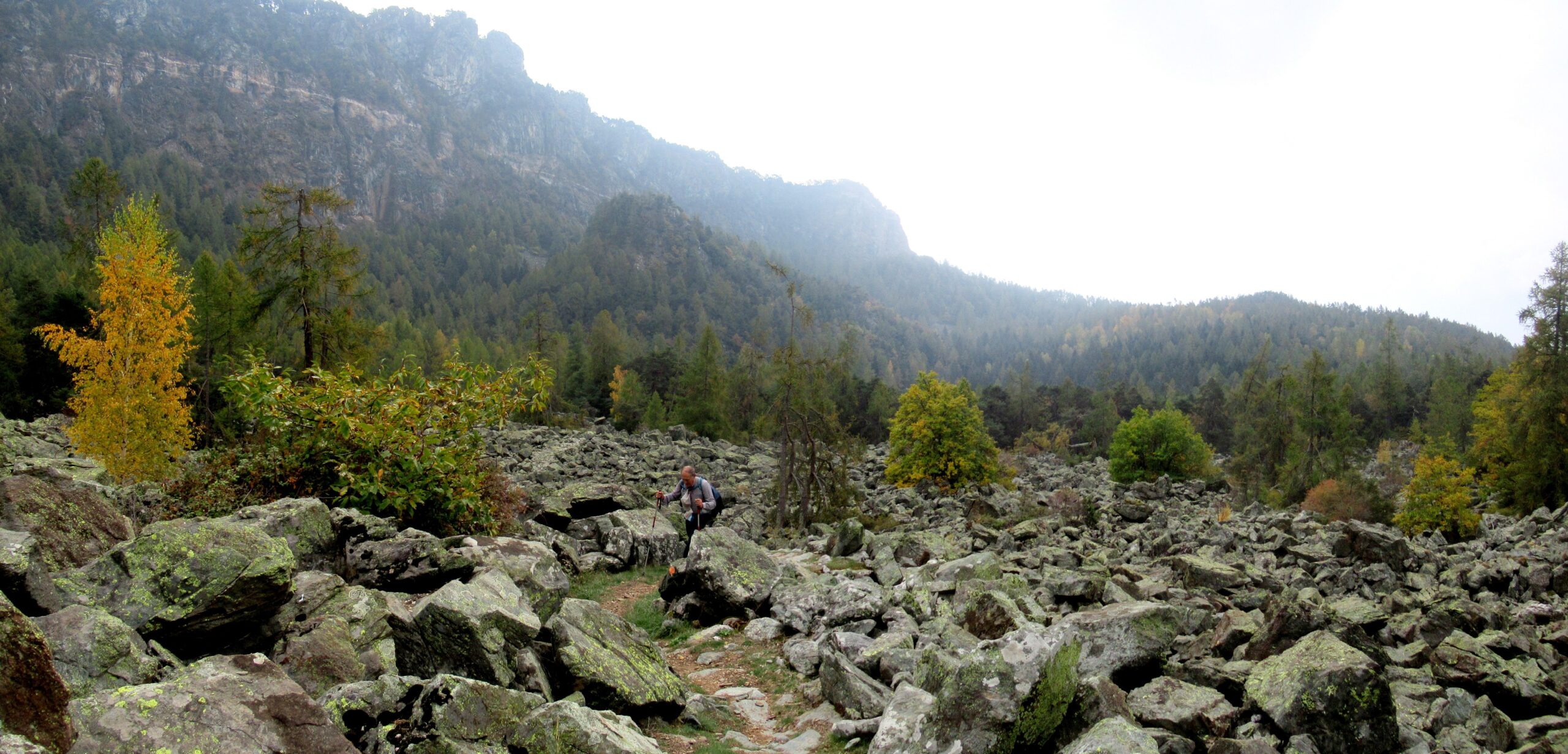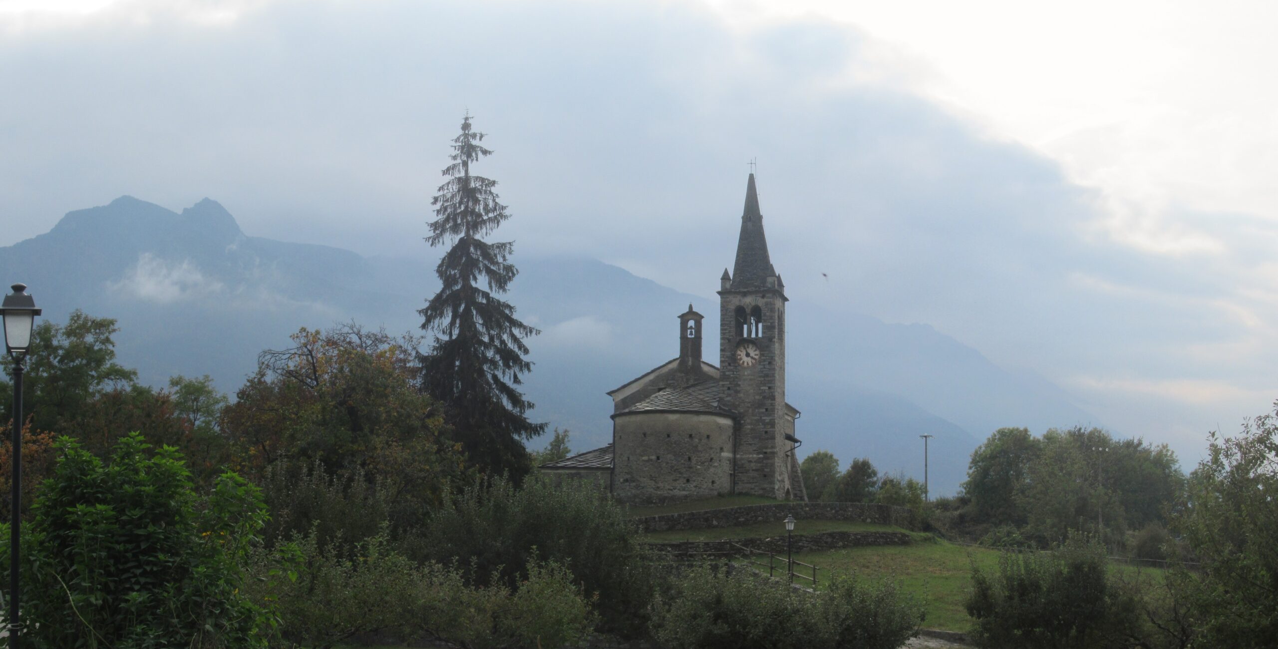 Tra boschi e distese prative si scende dolcemente fino a Moron di Saint-Vincent, accolti dalla preziosa chiesa romanica di San Maurizio. Da qui si continua la discesa fino a Saint-Vincent passando non lontano dall’antico stabilimento termale di inizio Novecento, oggi in abbandono.