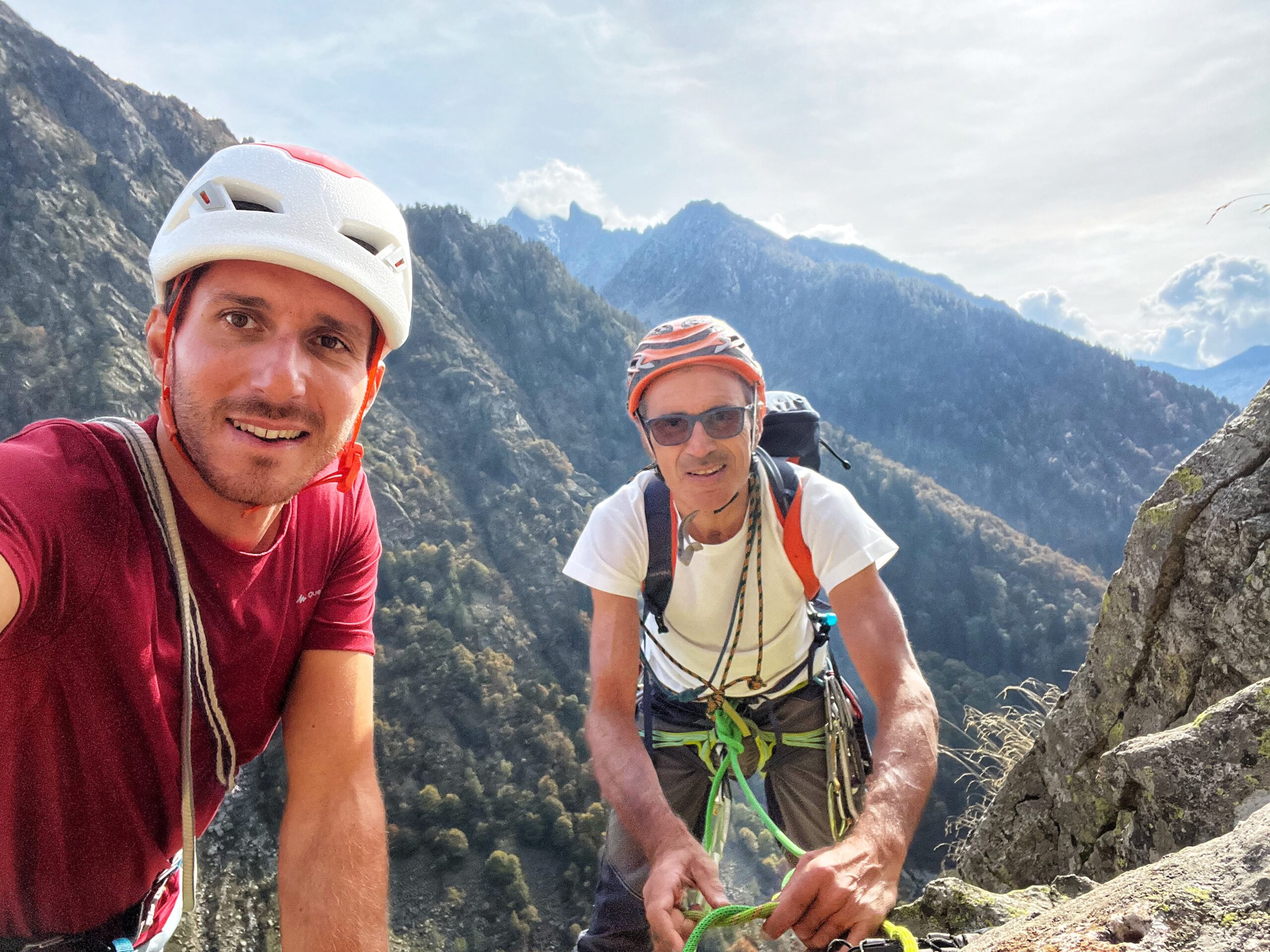 Trovata un po’ discontinua e con qualche tratto bagnato e lichenato, soprattutto su L1. Nonostante ciò, i passaggi che richiedono un po’ di decisione mi sono piaciuti. Belle le placche della parte alta dove si sale sempre bene con i piedi. Il piccolo tetto di L2 è ben protetto. Utilizzato un friend grande nella fessura di L1 ed uno medio a metà della fessura di L4.