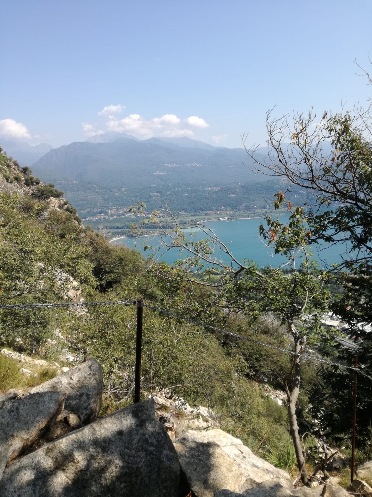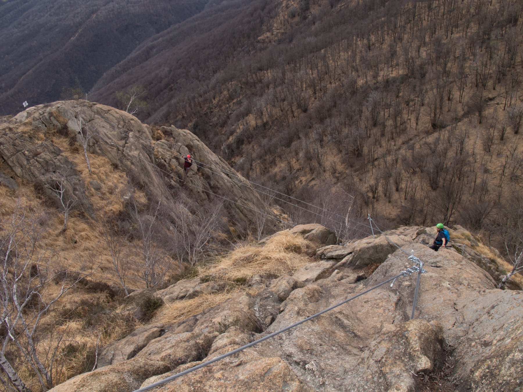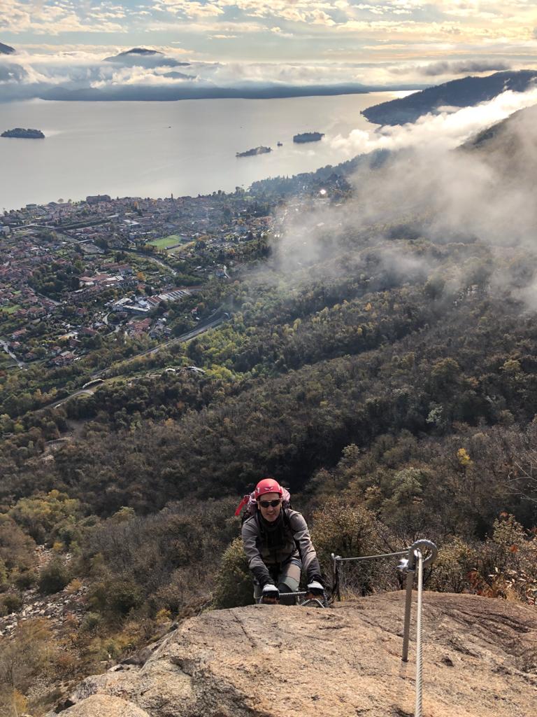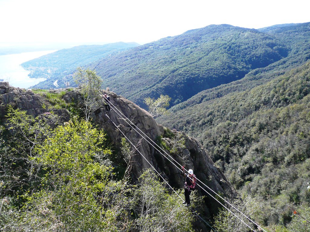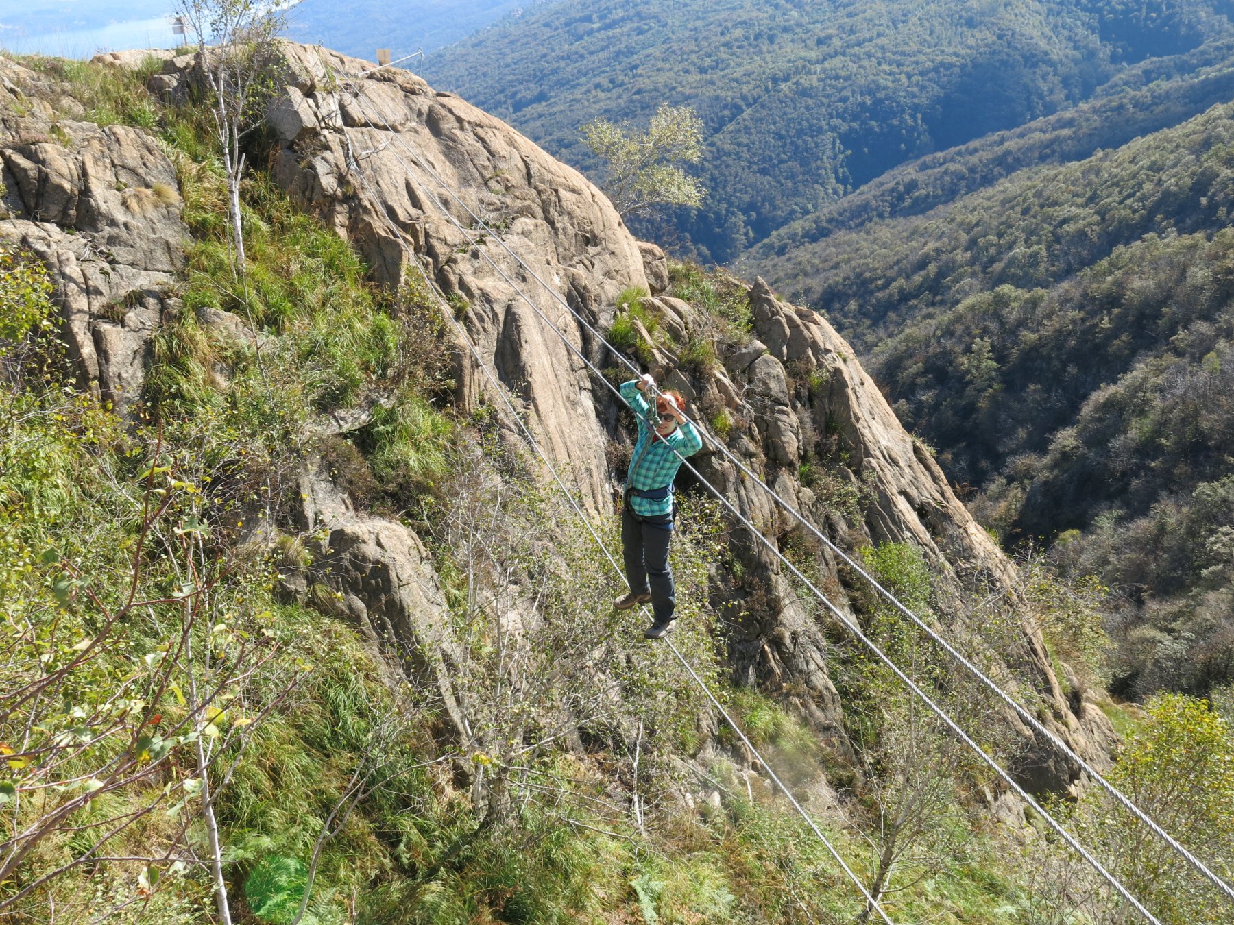 Arrivati al libro, solo una passeggiata in sicurezza fino al Camoscio, a parte il ponte tibetano, che si può bypassare, panorama fantastico sul Lago Maggiore e le cime limitrofe. Poco dopo