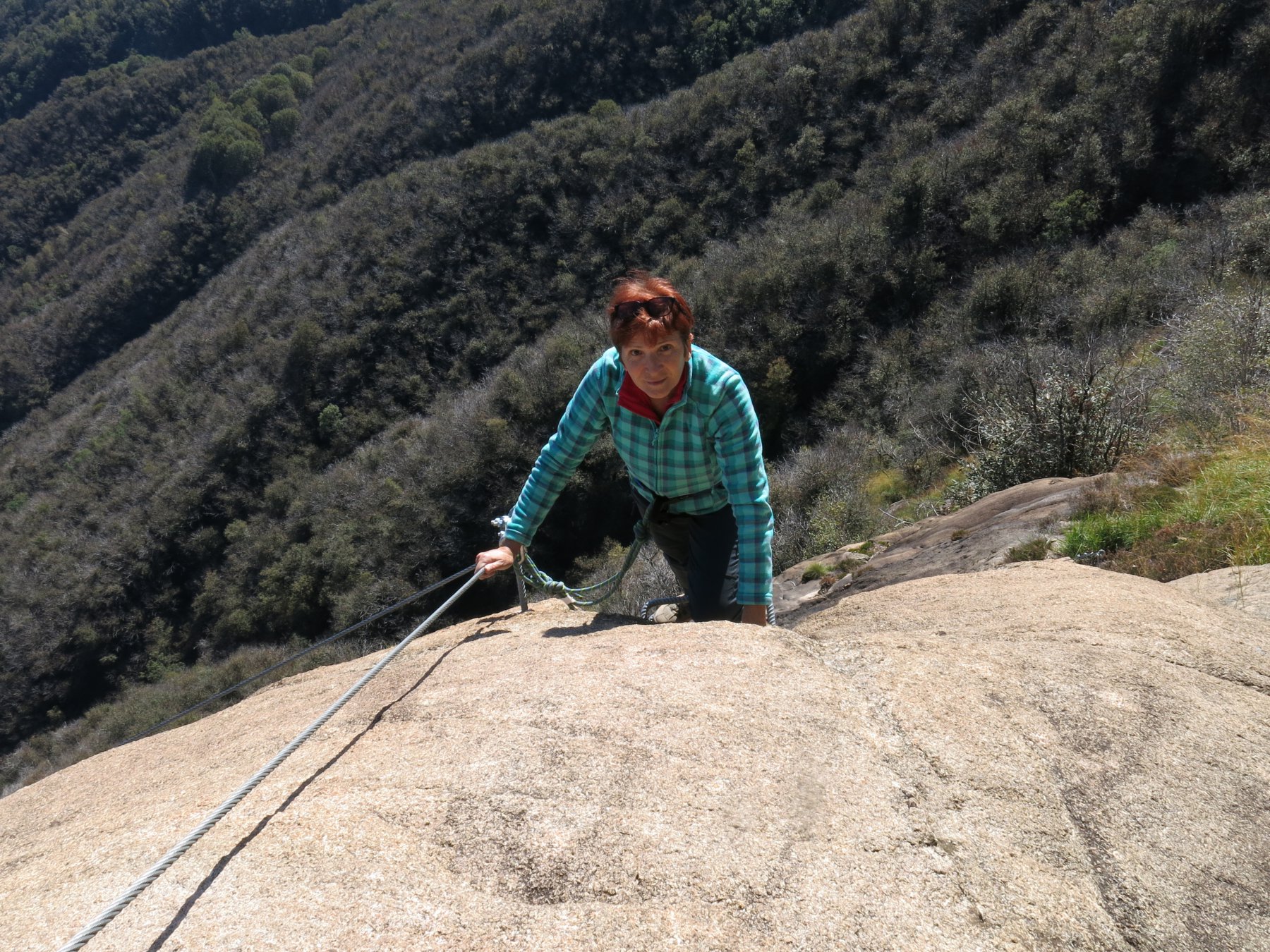 Il passaggio chiave, una cengetta un po strapiombante da attraversare con nervi saldi vista l’esposizione.