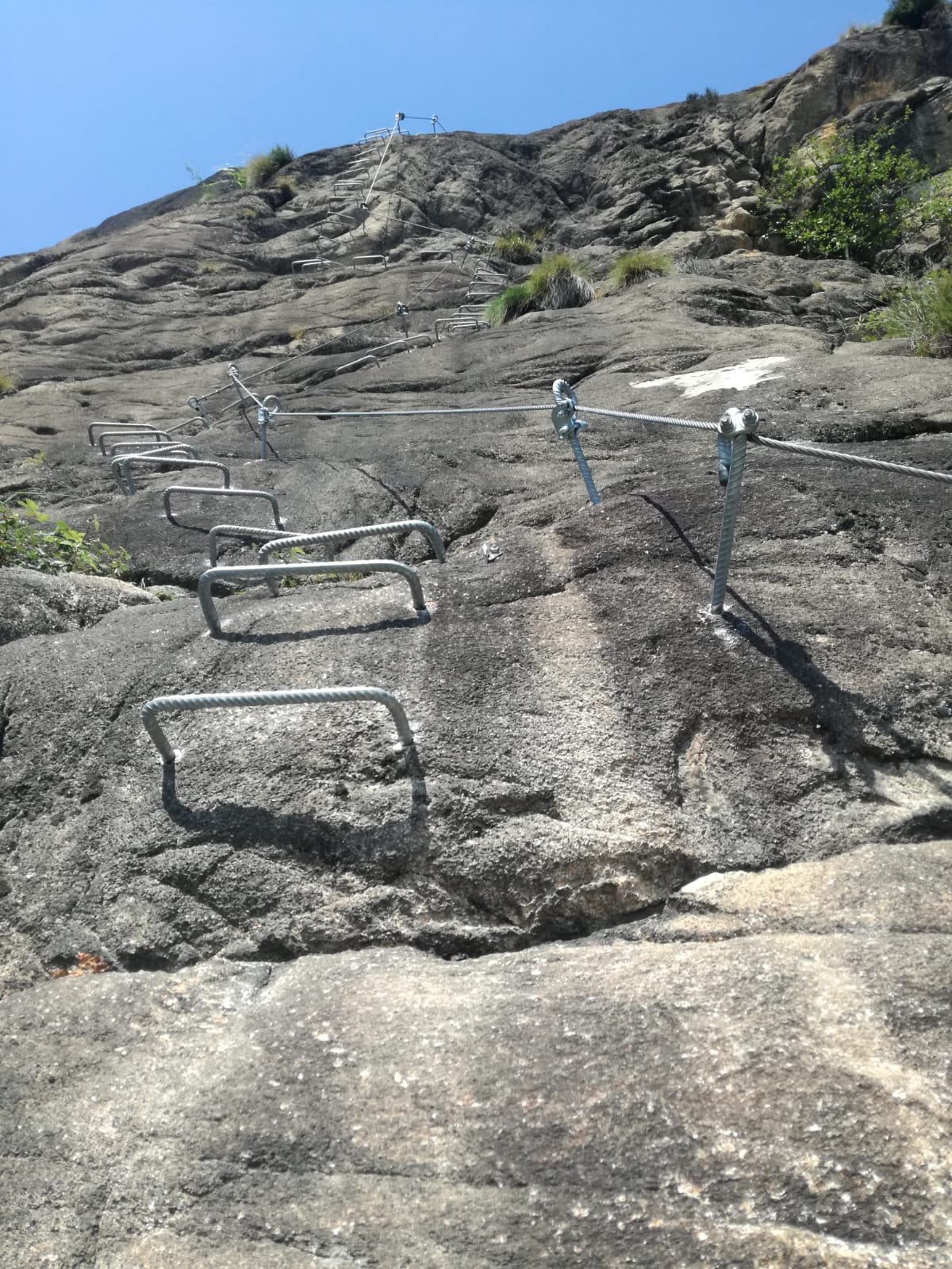 Percorso molto divertente, ferrata alla Svizzera (complimenti al Cai di Baveno), a tratti bella strapiombante, mai difficile, su granito che dà garanzia.