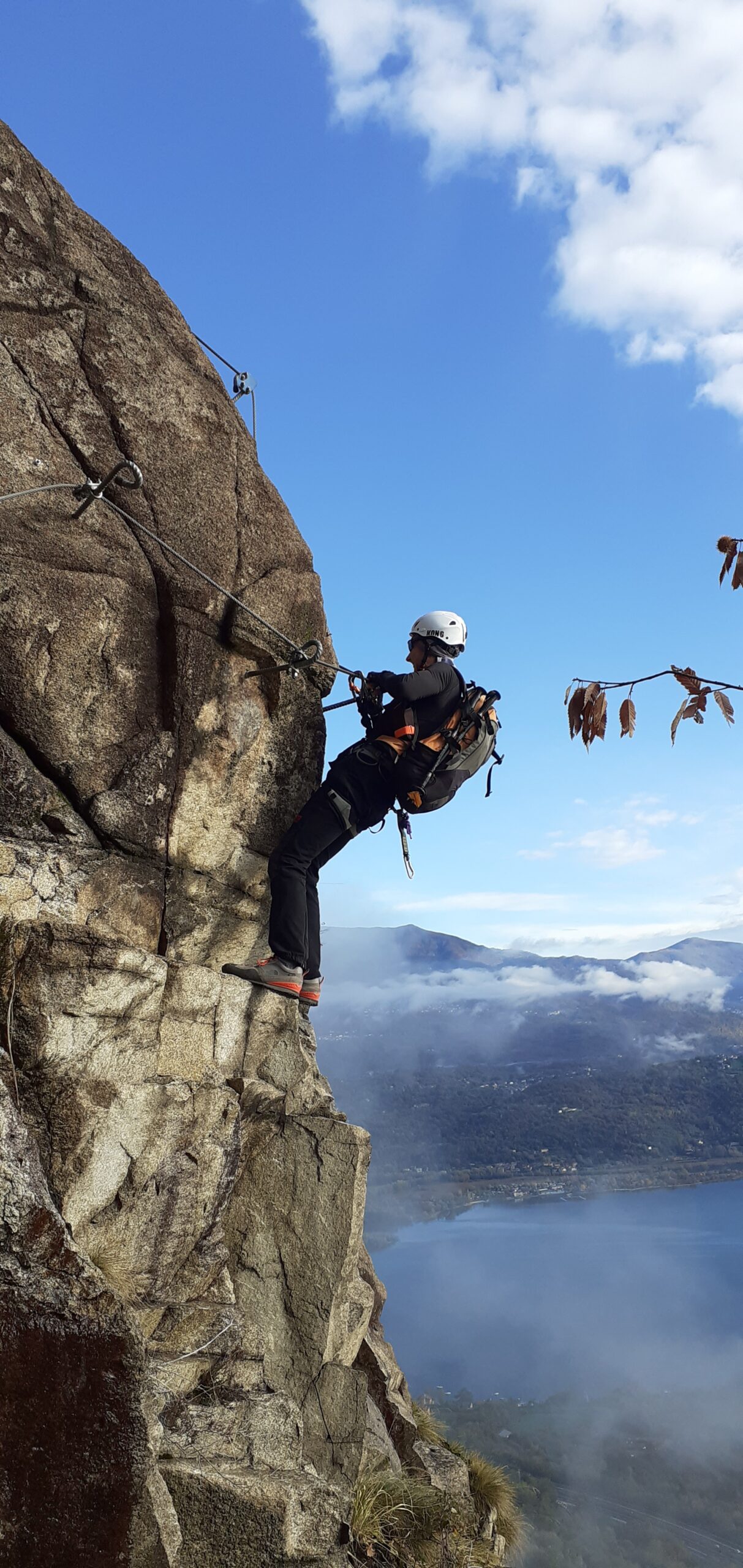 Bella e panoramica ferrata con vista sul lago Maggiore. Roccia bagnata in molti tratti per la pioggia caduta ancora durante la notte ma la progressione non ha presentato problemi. Anche il passaggio più esposto e spettacolare è meno impegnativo di quanto sembrerebbe grazie ai gradini ben piazzati nei punti giusti. Saliti poi al monte Camoscio da dove ci siamo poi diretti allo Zughero e al Mottarone per un giro di circa 20 km e 1.500 metri di dislivello. Giornata calda e soleggiata a parte un po’ di foschia mattutina. Con Danilo, Vincenzo e Ettore.