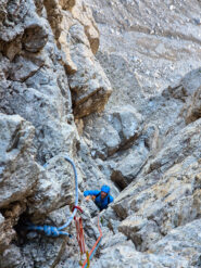 - L9: placca di roccia non buona (35m, IV, sosta su pilastro rossastro)