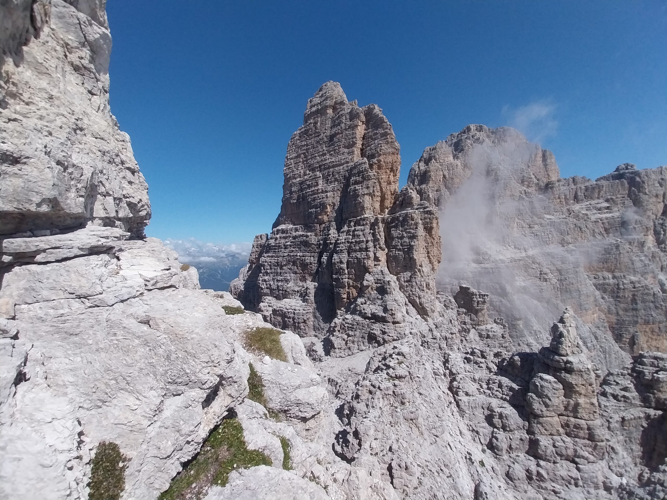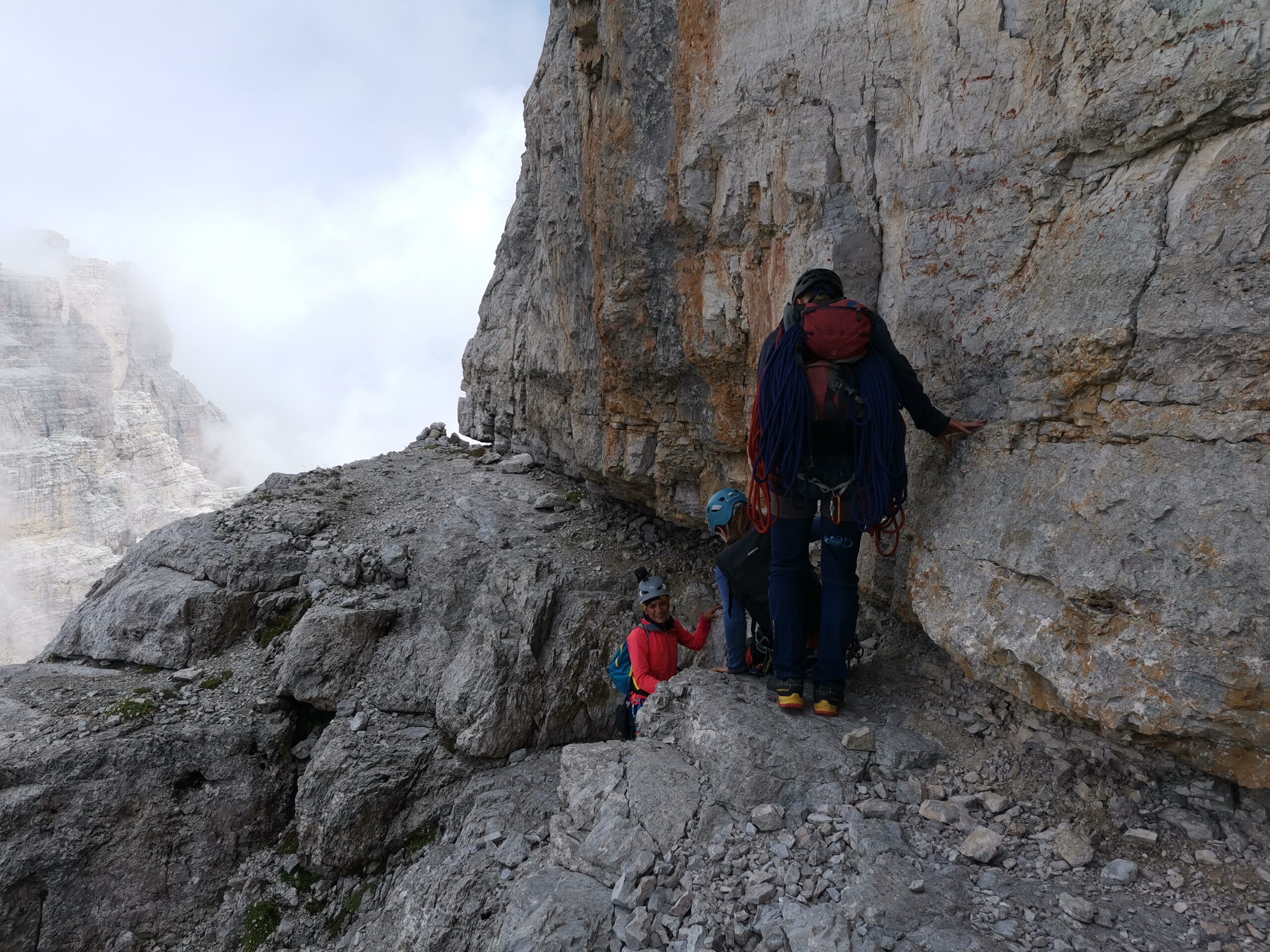 Da Vallesinella (strada a pagamento da Madonna di Campiglio) si raggiunge il Rif. Brentei, o si prosegue fino a Bocca di Brenta per pernottare al vicino Rif. Pedrotti (2h o 3h15).