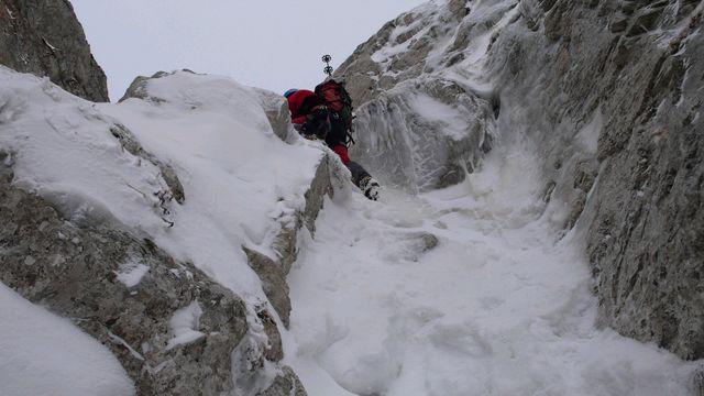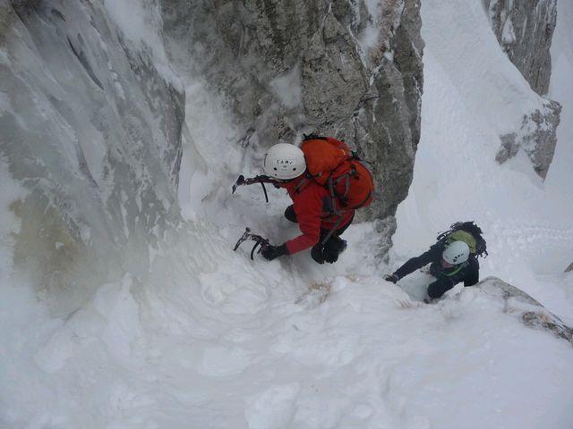 Una fitta nevicata ci ha accompagnati sino all’inizio del canale della colme, poi il sole ha prevalso e ha permesso di goderci la gita. Il canale è in ottime condizioni, la prima strozzatura è coperta dalla neve, il secondo ostacolo si aggira meglio sulla destra dove il ghiaccio vivo di fusione fa apprezzare l’aver portato due picche e infine l’uscita meglio sulla destra dove la neve è più assestata.