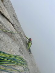 Partiti con altri progetti, causa nebbia e poco tempo, abbiamo ripetuto JMC che è sempre una gran bella via e abbiamo arrampicato al fresco.