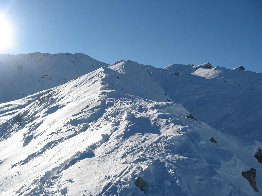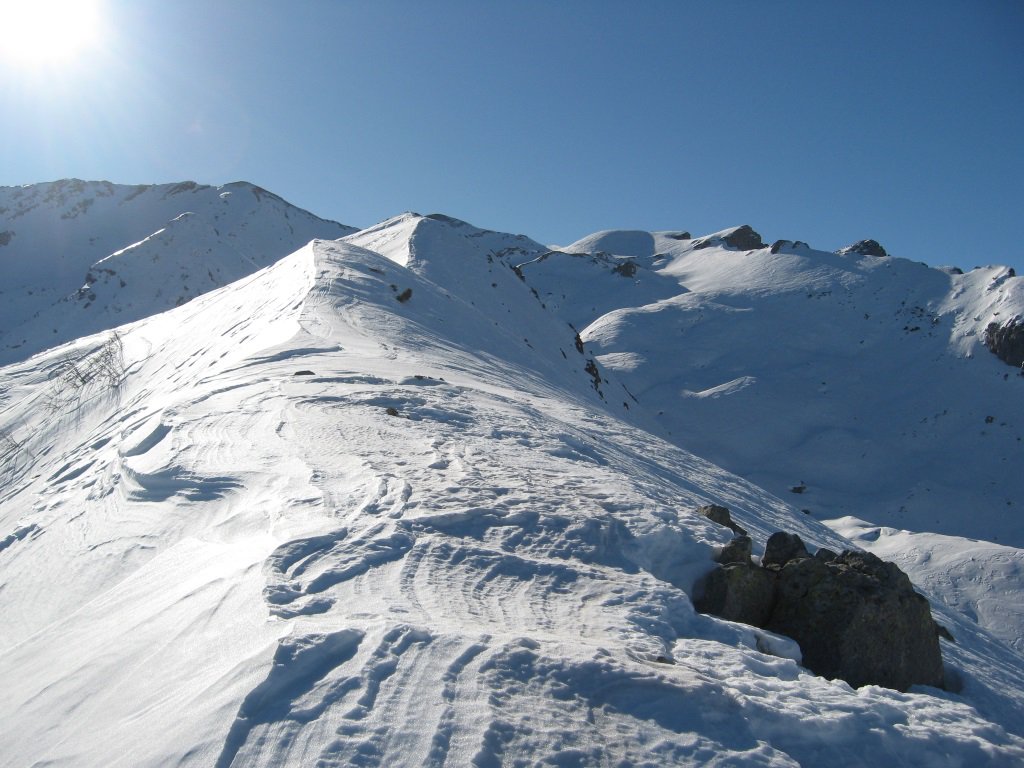 Volendo, e con condizioni di innevamento idonee, si può continuare sul crestone poco inclinato e sinuoso fino a toccare una seconda elevazione più alta sotto il costone tra Monte Creusa e Ciotto Mien.