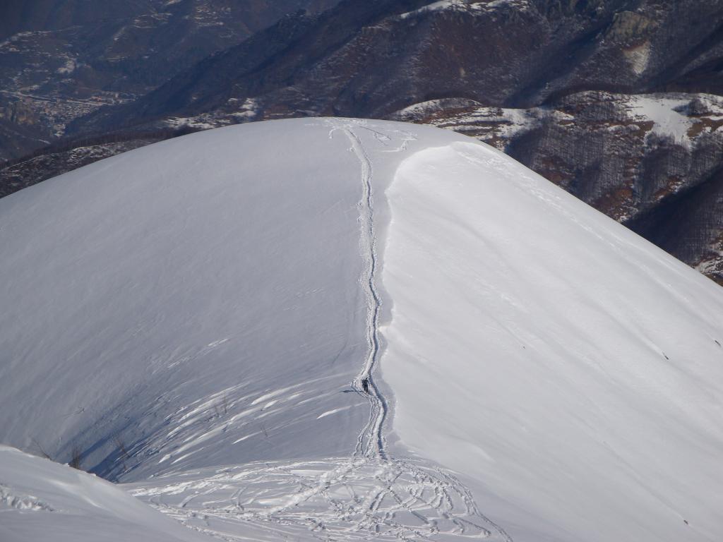 Da qui si guadagna una selletta leggermente più bassa alla base dello strappo finale, nuovamente ripido, che consente di toccare il grosso cippo di pietre (contenuto da una rete metallica) di Costa Campaula.