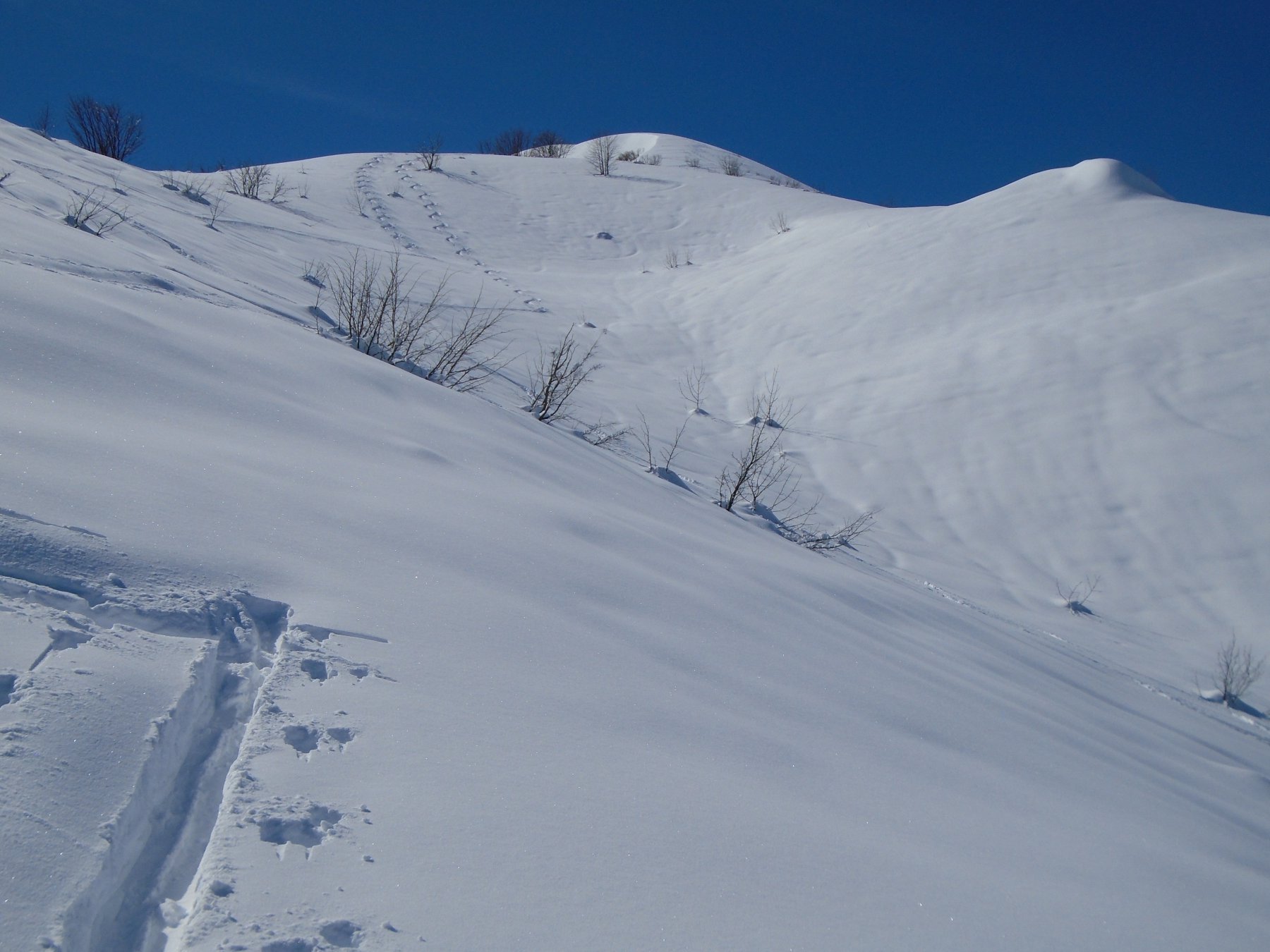 Altro tratto con pendenza sostenuta ma ampio e facile, che consente di raggiungere un ampio dosso pianeggiante a circa 2100 m.