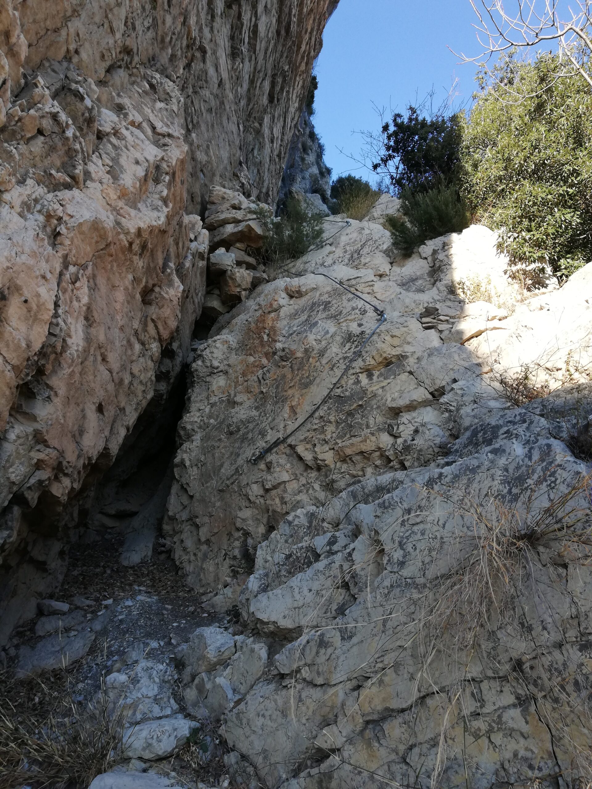 Si tratta di un sentiero attrezzato con cavo corrimano che si alza a picco alle spalle del centro nautico. In ultimo si cammina sulle reti paramassi poste a protezione dell’abitato. Negli ultimissimi metri si passa attraverso un arco di roccia alla cui destra vi è uno sperone roccioso con croce che può essere raggiunto con brevissima deviazione non attrezzata su traccia ripida e che richiede un minimo di attenzione. Si intercetta infine un sentiero segnalato che percorso verso dx riporta a Campione passando attraverso alcune passerelle e una galleria. Tempo complessivo indicativo 1h 30′ A/R.