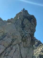 Gita molto divertente.. Arrampicata piuttosto continua, ambiente superlativo. L’ideale per giocare con le protezioni veloci.. Si possono unire diversi tiri. Noi l’abbiamo fatta in 7 tiri allungando molto le protezioni
