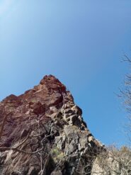 Dirigendosi verso sinistra sulla pietraia, si arriva ai piedi di una grossa testa rocciosa.