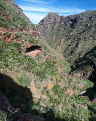 Salire di circa 80 metri lungo la strada per svoltare a sinistra su una strada asfaltata che sale abbastanza ripida verso il quartiere alto. Alla nostra sinistra il “Barranco Seco” si abbassa sempre di più.