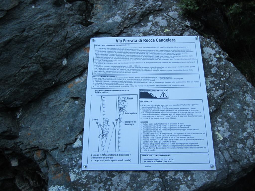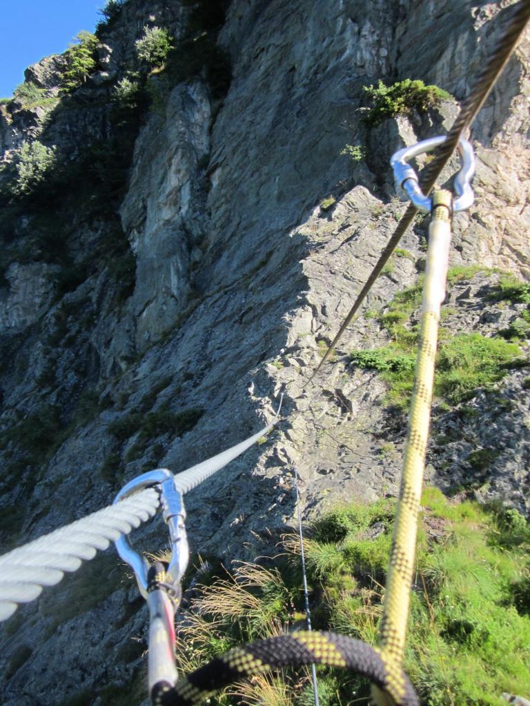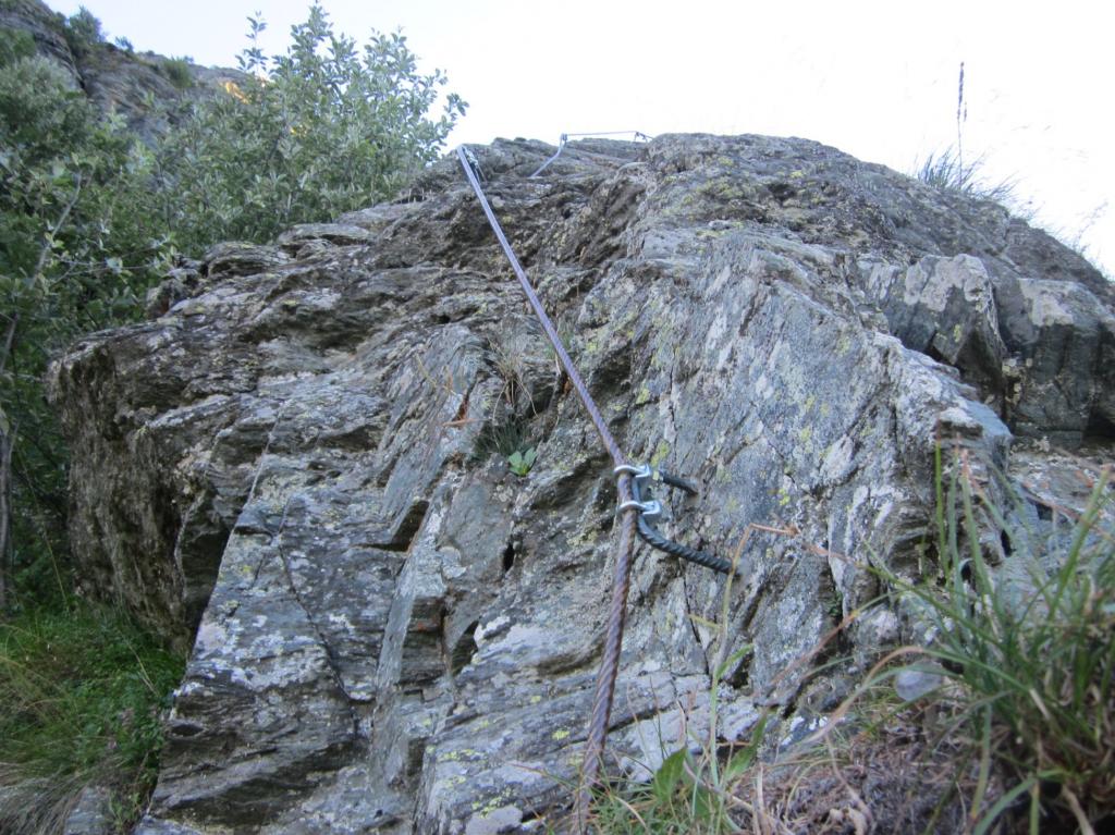 Ho fatto in solitaria questa ferrata che ancora non conoscevo. Alcuni commenti: percorso di salita per giungere all’attacco molto ben segnalato da cartelli e segni di vernice rossa. La ferrata è stata attrezzata molto bene e in sicurezza; ci sono due tratti verticali uno prima del ponte delle scimmie e uno dopo. Anche il sentiero di discesa è ben segnalato da cartelli e bollini rossi; peccato che la vegetazione in alcuni tratti di prato e di bosco abbia reso quasi invisibile il passaggio ormai coperto da vegetazione. La descrizione di giuliof è accurata e precisa, forse le 3-4 ore indicate per salire la ferrata sono un po eccessive.