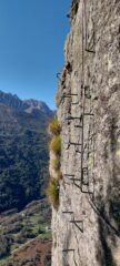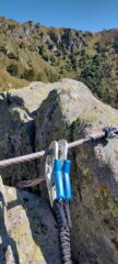 Sentiero di avvicinamento ben segnalato ma ripido. Ferrata bella con tratti impegnativi e lunghi. Qualche tratto è senza scalini e bisogna trovare i punti per arrampicarsi. Il ponte tibetano è breve e senza difficoltà. Comunque una bella Ferrata . Il sentiero di discesa non è dei migliori e penso che se fosse bagnato potrebbe dare qualche difficoltà a scendere ed è molto ripido.