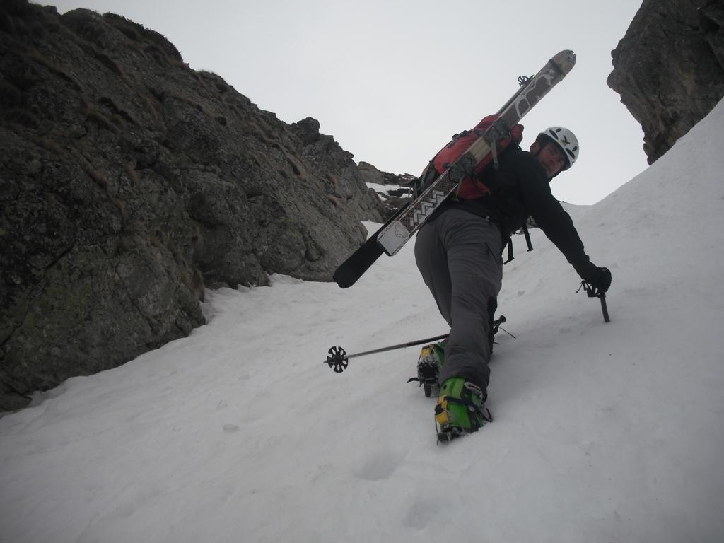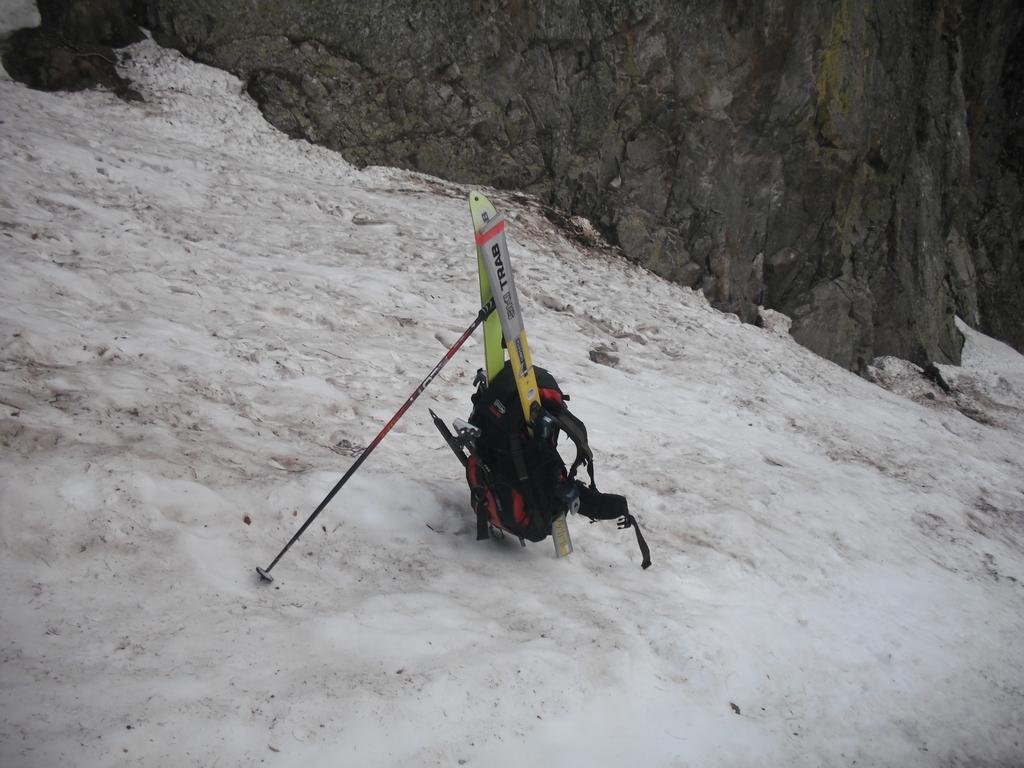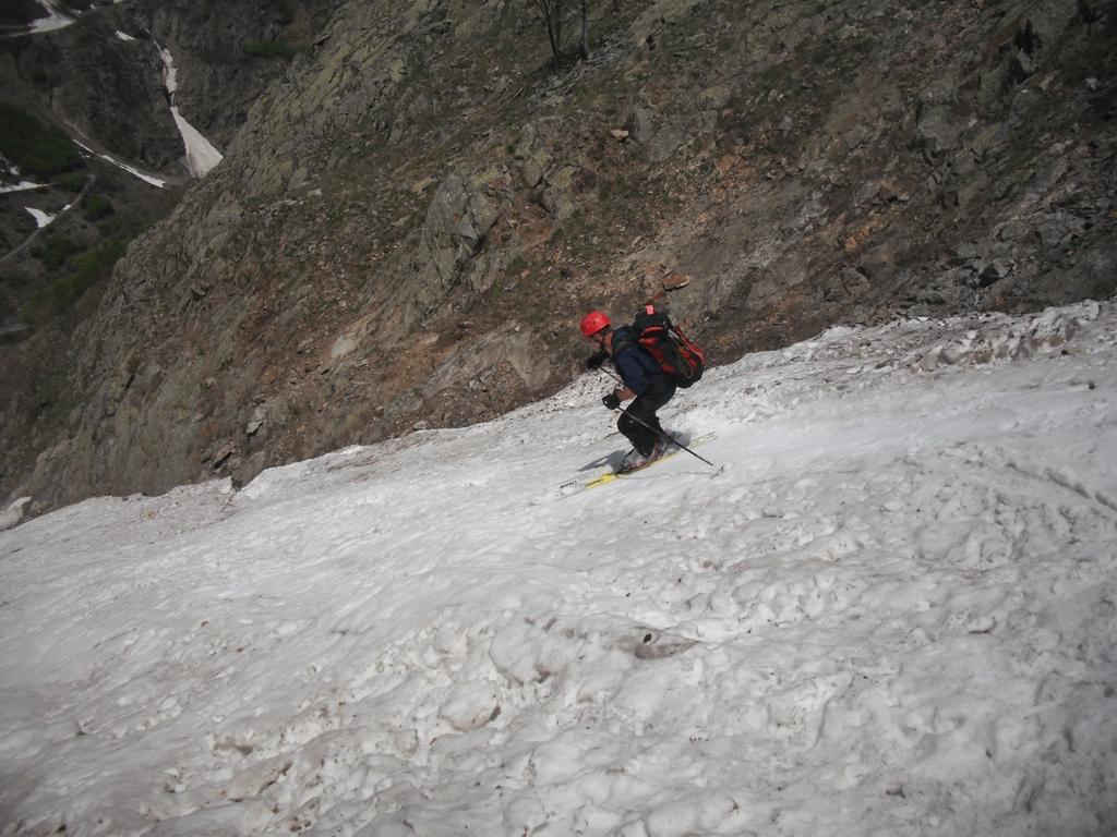 Nel canale pochi metri di neve pessima inconsistente, poi subito bella compatta nel tratto più impegnativo con qualche piccolo sfondamento a tratti.