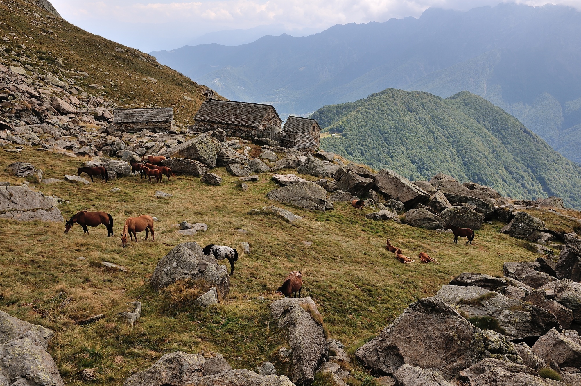 Giro ad anello con partenza e arrivo al Blitz, più ampio rispetto a quanto indicato nell’itinerario. Dall’Alpe Blitz non raggiungiamo la chiesetta ma ci dirigiamo lungo la sterrata verso Ovest, scolliniamo sul versante della Valle degli Orti e proseguiamo dapprima lungo una strada realizzata di recente poi sul vecchio sentiero verso l’Alpe La Cailina. Prima di arrivare ai prati dell’alpeggio prendiamo il sentiero a sinistra che inoltrandosi nella Valle degli Orti attraversa pendii ripidi ma rimane abbastanza ben percorribile, salvo un passaggio franato su un masso affiorante. Arriviamo quindi all’Alpe degli Orti (1223 m), luogo abbandonato da tempo con la cascina ormai crollata e la grossa stalla destinata purtroppo a fare la stessa fine. Il sentiero che da qui conduce direttamente all’ Alpe Caneto, transitando per la località Curticc, non è più agibile, praticamente scomparso tra la vegetazione da quando non viene più percorso dalla gara podistica che si svolgeva annualmente fino a una decina d’anni fa. Dal fronte della stalla parte comunque un sentiero ancora in buone condizioni che risale l’opposto versante del vallone e porta all’Alpe Rovina di sotto. Seguiamo un sentiero evidente verso sinistra che ci porta in breve all’Alpe Rovina di sopra, da cui continuando a salire nella stessa direzione sempre su sentiero arriviamo alla Colma di Dissimo, alpeggio ancora utilizzato sullo spartiacque tra Vigezzo e Onsernone. Risaliamo verso Est i pascoli passando per Il Motto, quindi il sentiero tra rocce affioranti si sposta sul versante della Valle Onsernone e ci porta alla sella quotata 1833 m, alla base della cresta che conduce alla punta Nord-Est della Cima di Caneto. Raggiunta agevolmente la cima effettuiamo la traversata verso la punta Sud-Ovest da cui scendiamo alla bocchetta tra lo Ziccher e la cima di Caneto, 1821 m, da qualcuno definita “Bocchetta di Caneto”. Da qui scendiamo in breve all’omonimo alpeggio, attualmente ospitante un numeroso gruppo di cavalli. Risaliti al valico raggiungiamo la Bocchetta di S. Antonio, da cui facciamo rientro lungo il sentiero che percorre il versante occidentale del Monte Ziccher e scende poi al piccolo Oratorio del Blitz.