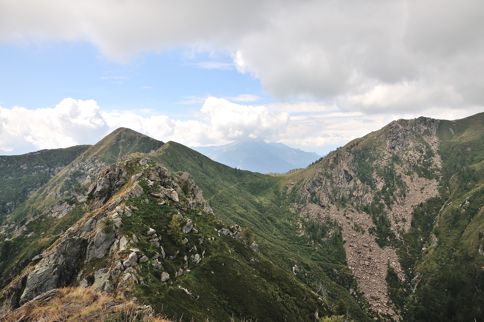 Interessante percorso in una zona poco frequentata; qualche nuvola in cielo che comunque non impedisce di ammirare il panorama, con il Monte Rosa che appare tra le due cime di Caneto. Gita in compagnia di Marco.