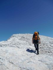 necessari i ramponi per risalire quel che resta del ghiacciaio del Canin.