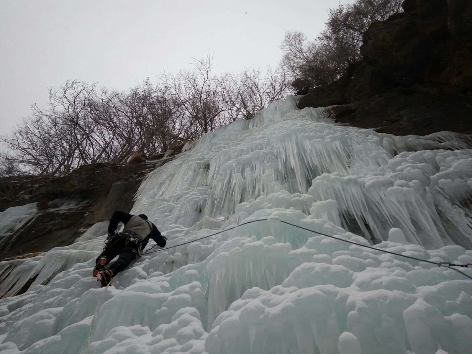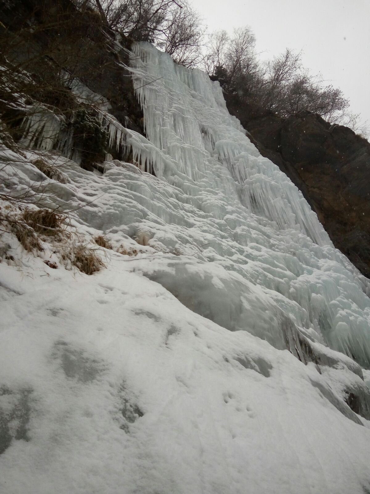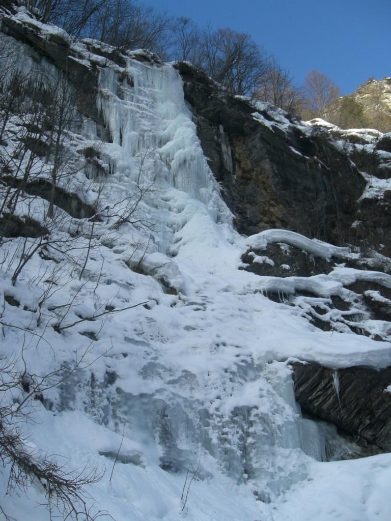 Dalla strada salire un tratto facile di 15/20 metri fino alla base del salto principale.
