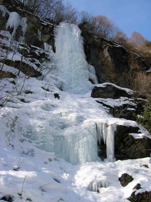 Discesa: dal Salto principale con una doppia da 50 metri. Se si prosegue fina al termine del rio, traversare a sinistra e scendere per pendii ad una baita, poi fino alla strada poco a monte della galleria.