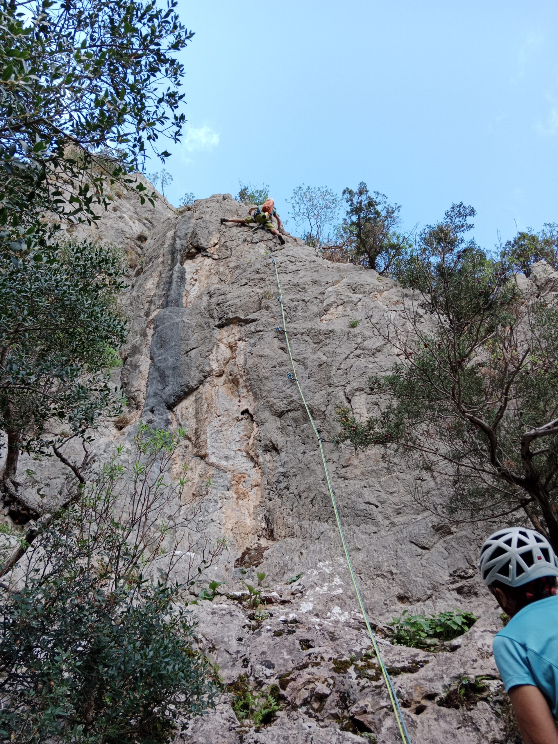- L5: 35 m, 5a sul filo di spigolo, un pò vegetato, carino. Sosta posizionata ad hoc per la doppia.
