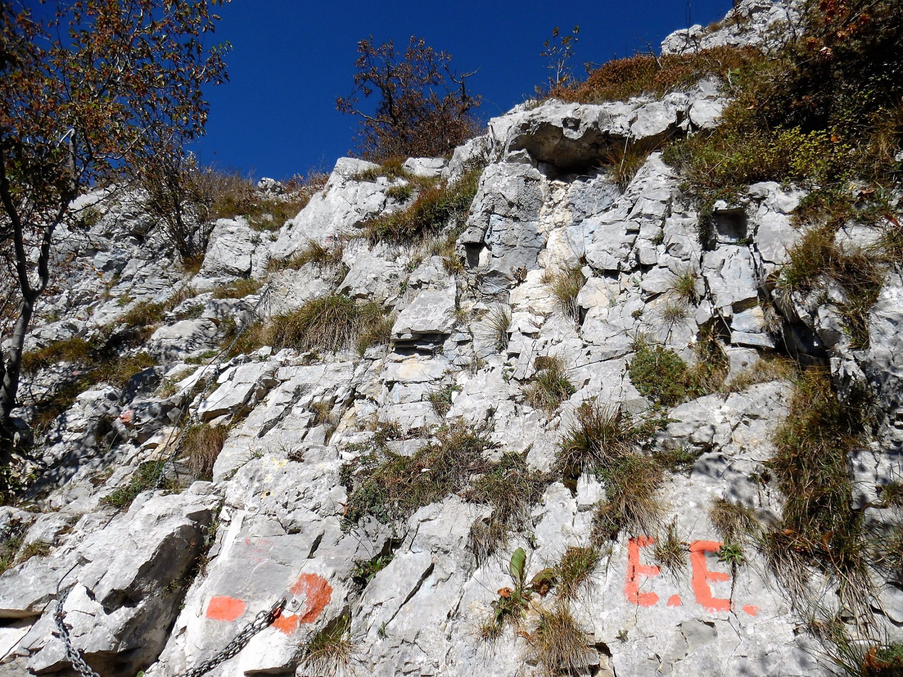 Splendida traversata dei tre Corni di Canzo! Salita all’Occidentale per canalino nord di roccia più che discreta (comunque aggirabile su sentiero ben segnato a destra dello stesso) che sbuca all’uscita della ferrata. “Passo della vacca” e, in breve, croce di vetta. Discesa divertente su versante nord per canalini e roccette fino alla forcella dei Corni e alla dorsale che conduce alla base del Corno Centrale. Anche qui, ben segnalato, salita per un facile canalino (aggirabile a sinistra) e scesa per il bel versante est (attrezzato con catena e cavo). Infine al Corno Orientale per sosta panino e birretta. Secondo la bella guida “Prealpi lombarde occidentali” di Bellinzani, F+. Secondo Gulliver e le indicazioni sul posto, EE. Ma, visti i parecchi tratti verticali e attrezzati, perlomeno EEA.
