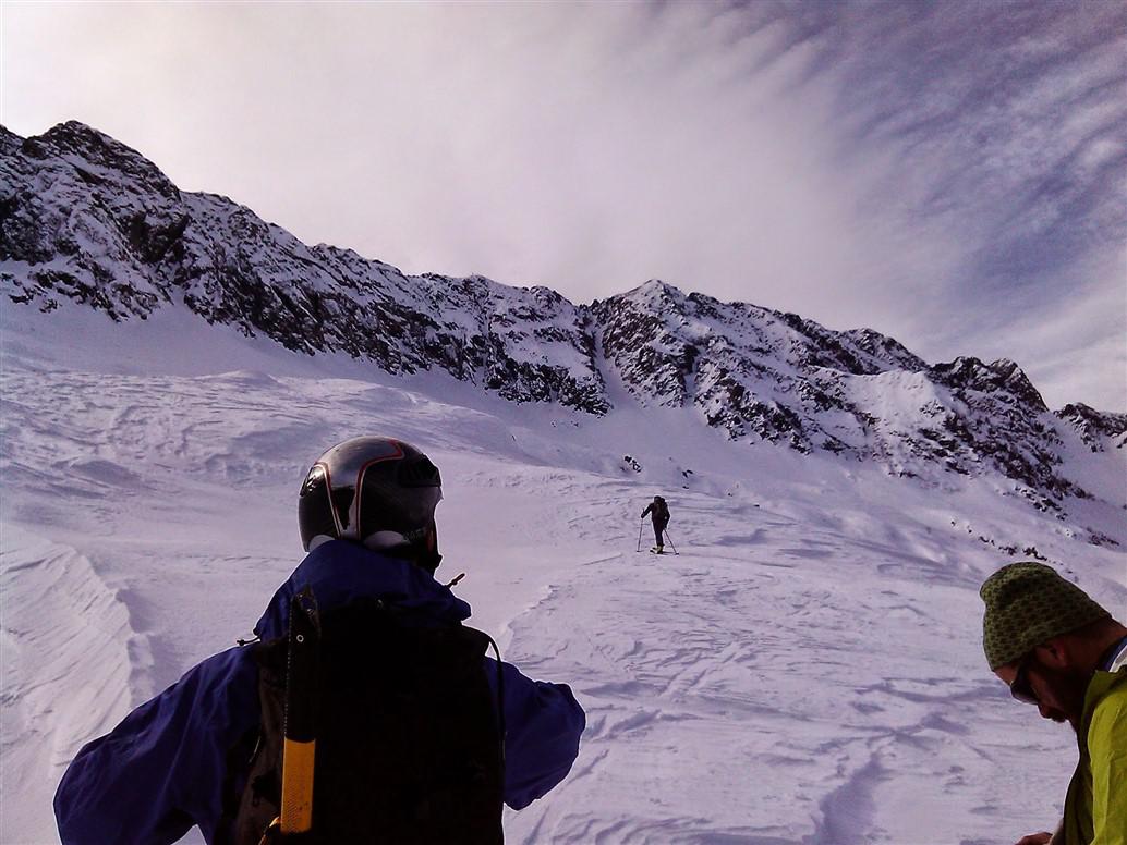 La discesa, per lo stesso itinerario, offre pendii facili ed alcuni con una buona pendenza (soprattutto il canale sotto la vetta) che sicuramente appagano della fatica