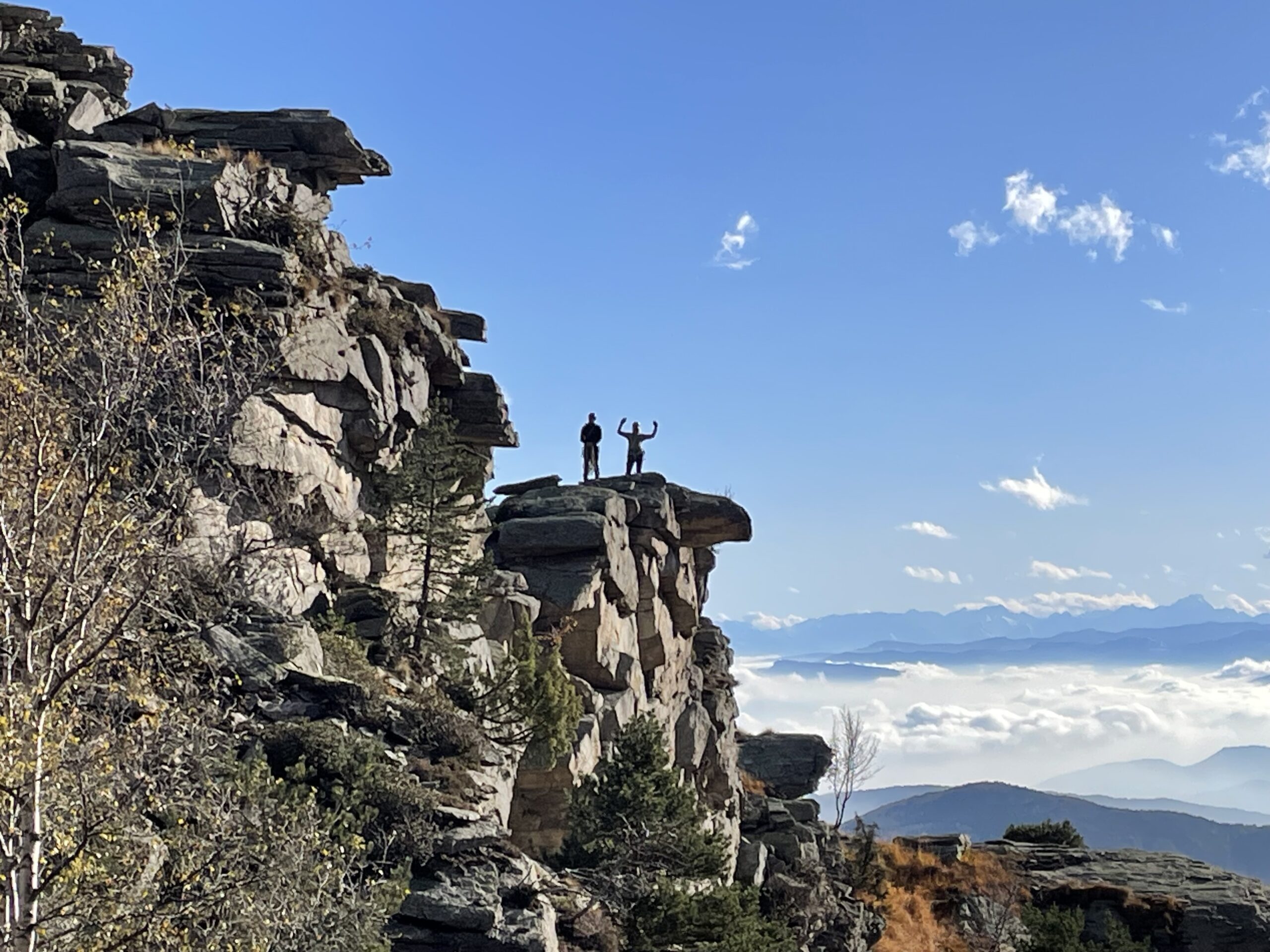 Via di quarto grado uniforme, lunga, di stile alpinistico se percorsa con scarponi. Ancora un po’ sporca in alcuni tratti. Salita in compagnia di Franco , Matteo ed Eva. Un giorno felice
