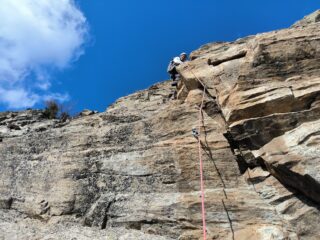 Bella via nuova dal sapore alpinistico. Fatta con scarpe da avvicinamento. Hanno sempre tenuto e si sono rivelate utili nei trasferimenti in discesa a nord ed est, dove era bagnato e c’era un po’ di ghiaccio.