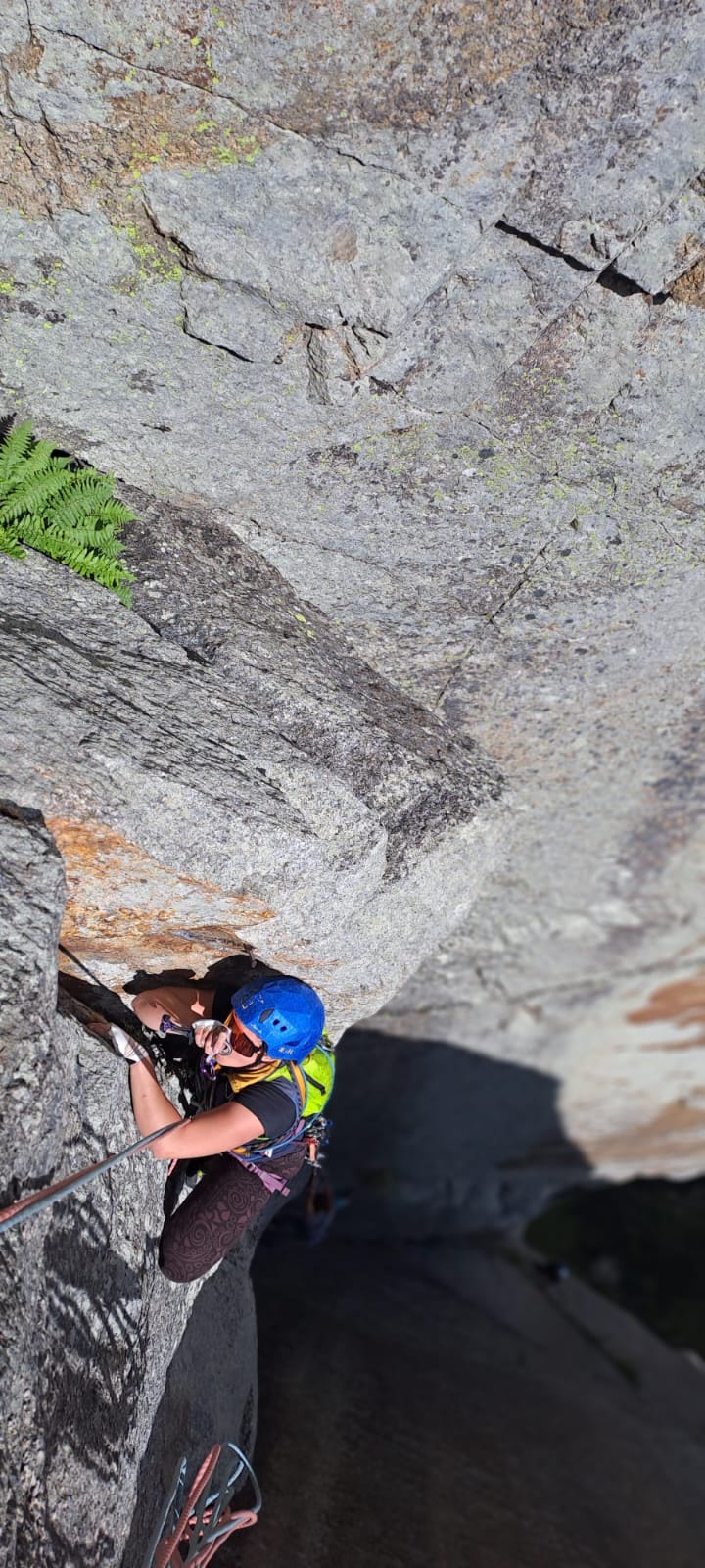 Bella via di soddisfazione, arrampicata fisica, guanti consigliati sul penultimo tiro, ultimo tiro ad esse da evitare.