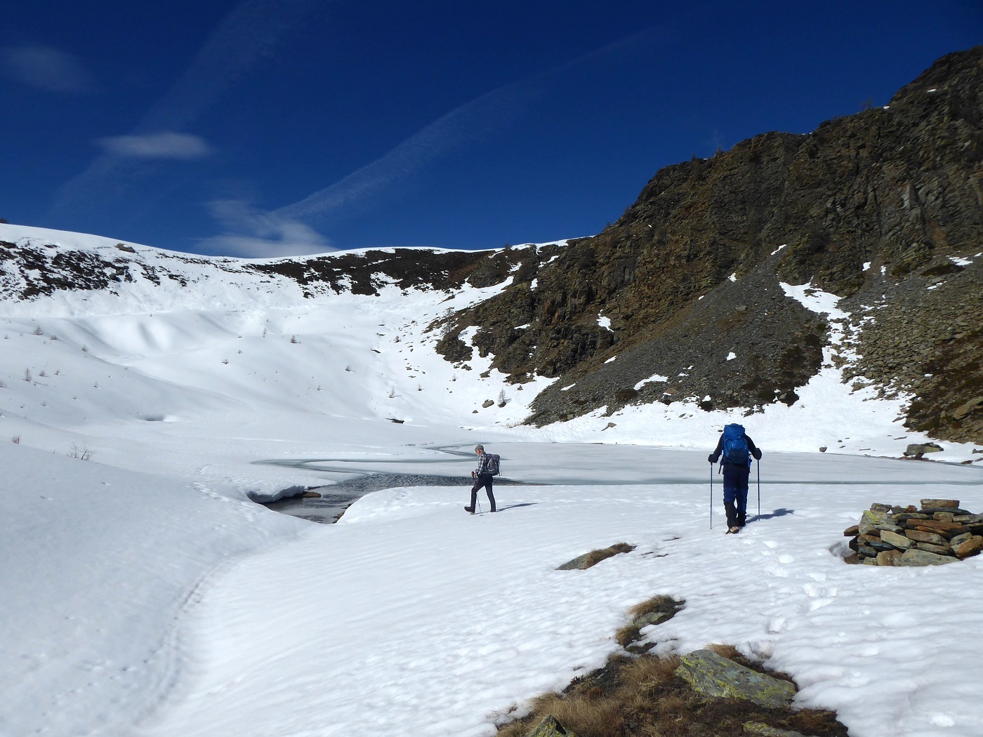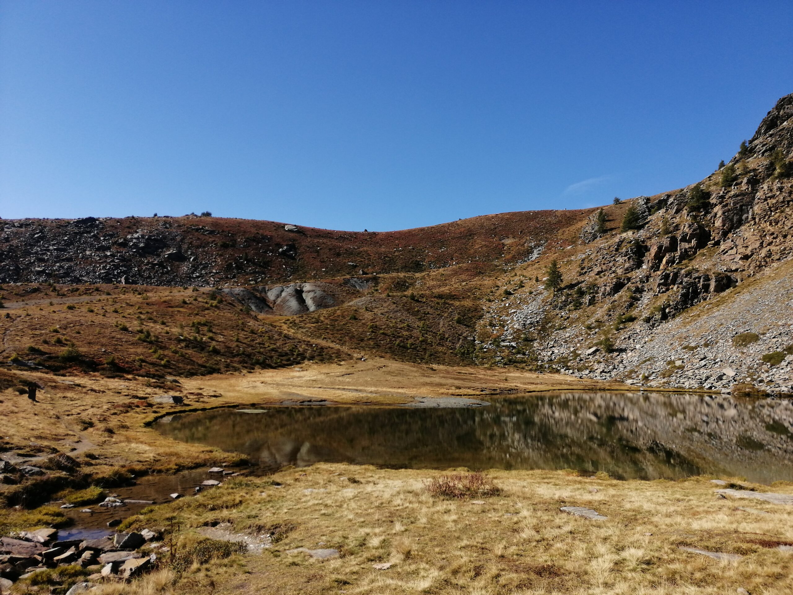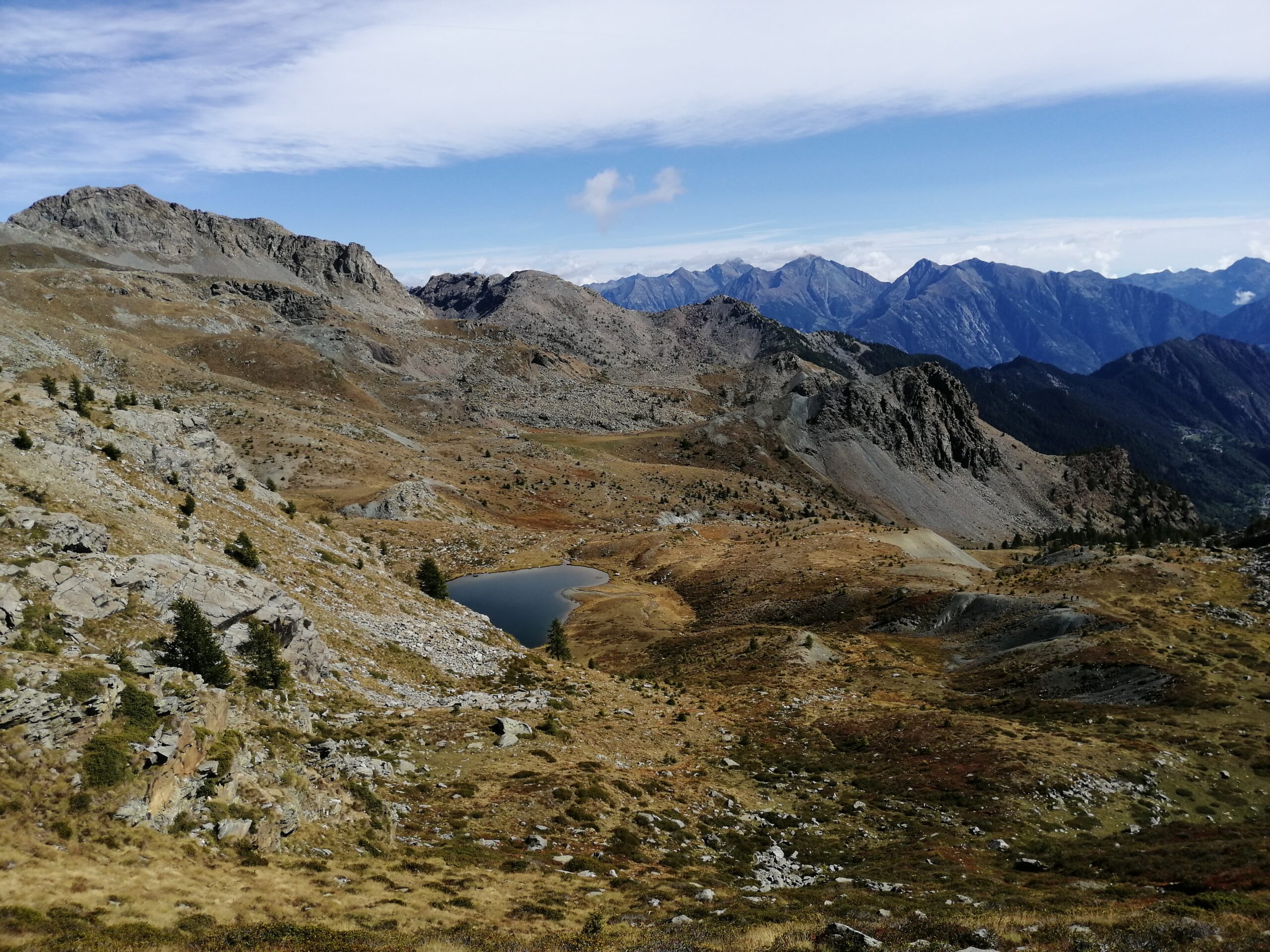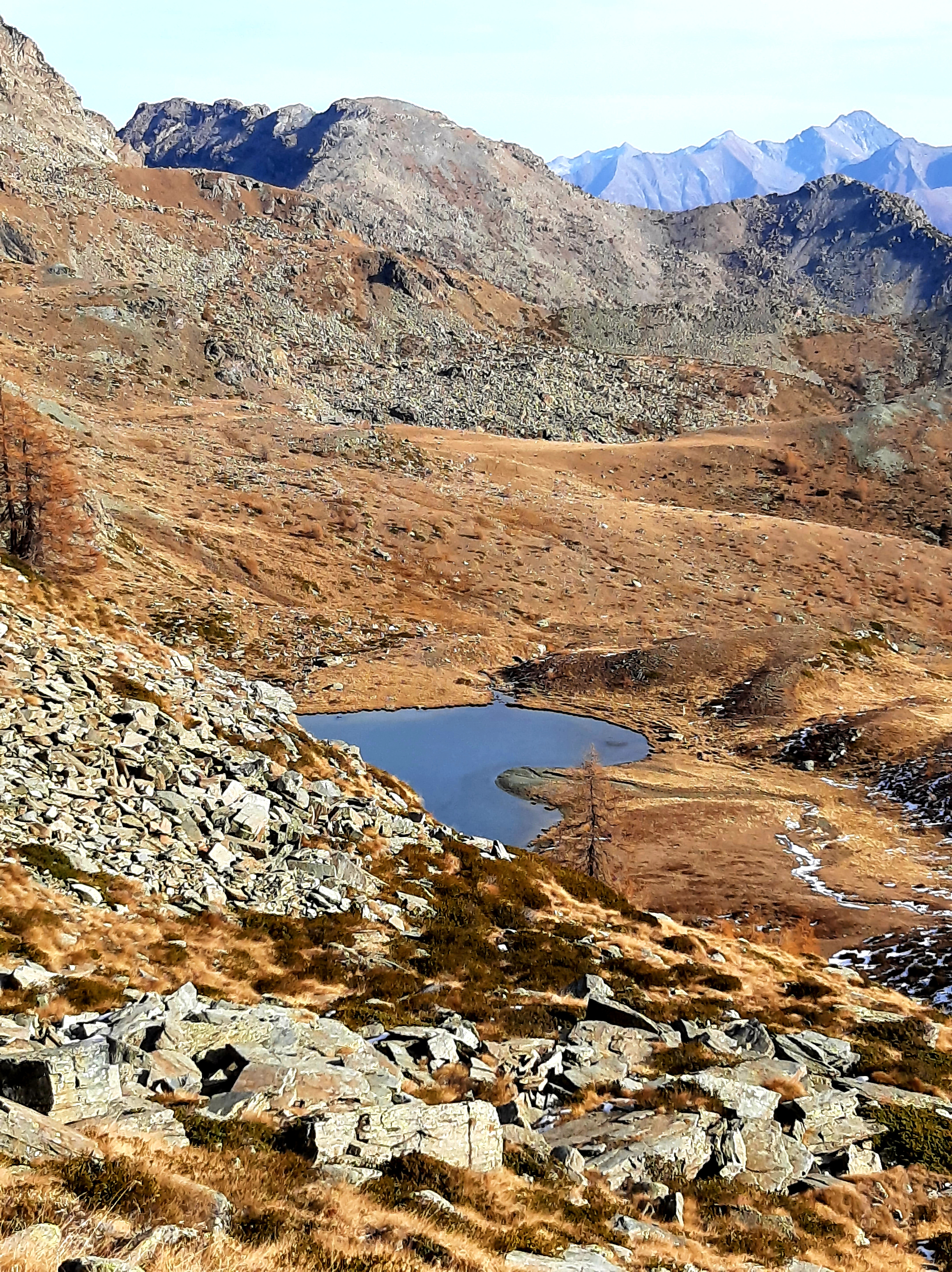 Discesa come per la salita oppure, tornati al colle, si può scendere lungo il 9c verso il lago Giasset e Dondena e da Dondena tornare lungo la strada fino all’auto. Altra opzione: se si è lasciata l’auto all’altezza del parcheggio per il Lac Muffè o ancora prima, una volta tornati al lago Raty proseguire su sentiero segnato verso il Lac Muffè e dal lago tornare sempre su sentiero fino al parcheggio.