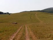 Superato il Vado,si attraversa la grande e bellissima piana del Voltigno da Nord a Sud lungo la pista che passa prima vicino a Casa Macerone e poi al Colle della Biffa.Si giunge infine a F.te Aciprano,vicino al margine sud-occidentale della piana.Si piega poi a dx con una curva a gomito alla q.1485,sempre seguendo la pista che ora diviene forestale e sale attraverso il Bosco Carboniere.Inizialmente con saliscendi e poi con un tratto più sostenuto,infine la forestale addolcisce la pendenza e raggiunge un valico a Q.1674,posto a Sud-Est di Capo di Serre.Si scende un pò sull’altro versante fino alla q.1635 circa.